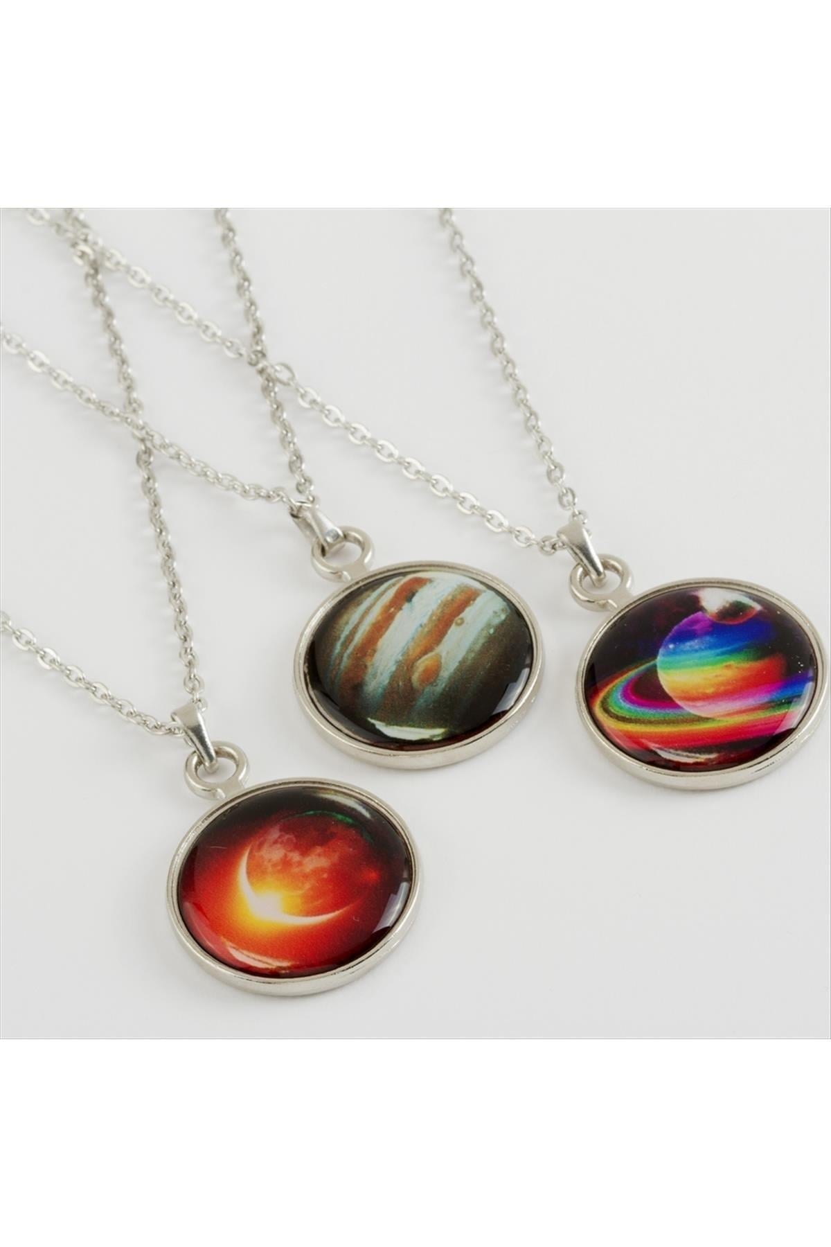 Canlı Kolye;Ürün malzemesi metal ve stickerdır. Ürün içersindeki gezegenler asortilidir. Siparişleriniz de karışık gönderielecektir.