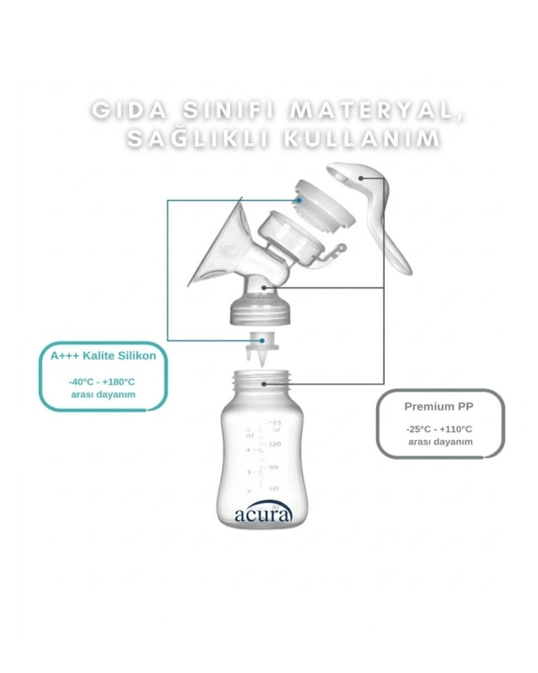 Günlük kullanım için tasarlanmış manuel göğüs pompası, annelere konforlu ve pratik süt sağımı sunar. BPA içermeyen güvenli malzemeden üretilmiş yapısı sayesinde anne sütü ile güvenli temas sağlar. Dayanıklı ve kaliteli tasarımı ile uzun süre kullanılabilir. 180 ml hacimli şişesi sayesinde süt toplama ve saklama açısından yeterli kapasite sunar. Şeffaf gövde üzerinden miktar rahatça görülebilir. Manuel kullanım sistemi sayesinde elektrik veya pile ihtiyaç duymaz. Evde, iş yerinde veya seyahatte rahatlıkla kullanılabilir. Masaj ve sağım özelliklerinin birlikte bulunması daha rahat kullanım sağlar. Masaj etkisi süt akışını desteklerken sağım işlemini kolaylaştırır. Ayarlanabilir vakum özelliği ile çekim seviyesi kullanıcı ihtiyacına göre ayarlanabilir. Ergonomik kulp yapısı elde rahat kullanım sağlar. Sessiz mekanizması sayesinde günün her saatinde kullanılabilir. Hafif ve taşınabilir tasarımı ile çantada kolayca taşınır. Biberon olarak da kullanılabilen yapısı sayesinde çok yönlü kullanım sunar. Kolay sökülüp takılabilen parçaları temizlik açısından avantaj sağlar. Sıcak su ile dezenfekte edilebilir. Hijyenik, taşınabilir ve kullanışlı manuel süt pompası arayan anneler için ideal üründür.