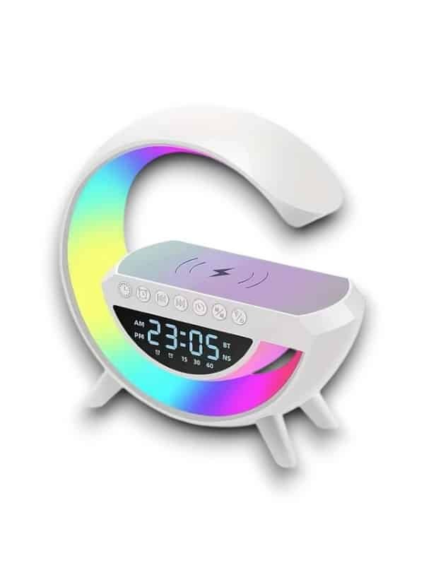 Kablosuz Şarj Özellikli Bluetooth Hoparlör Gece Lambası'nın rahatlığının tadını çıkarın Bu hepsi bir arada cihaz, size kristal netliğinde bir ses ve mükemmel bir ortam sağlamak için tasarlanmıştır. Dahili NFC şarjı, kablosuz şarj özelliği, ayarlanabilir parlaklık ayarları ve sezgisel çalar saati ile bu hoparlörün evinize rahatlık ve stil katacağından emin olabilirsiniz.  ahili Bluetooth 5.0 Hoparlör, müzik akışı için telefonunuza veya başka bir cihaza kolayca bağlanın. Kablosuz şarj teknolojisi ve NFC Şarj ile telefonunuzu ve hoparlörü kabloları takmadan şarj etmenizi sağlar. LED gece lambası özelliği sıcak beyazdan RGB ışıklara ayarlanabilir. FM radyo ve birçok farklı fonksiyonu ile başucu arkadaşı olarak kullanım için mükemmeldir. FM radyo ve birçok farklı fonksiyonu ile başucu arkadaşı olarak kullanım için mükemmeldir. Boştayken düşük güç tüketimi, enerji tasarruflu ve çevre dostu tasarım. Uzun ömürlü dayanıklılık için üstün kaliteli ABS malzeme ve üstün ses kalitesi. Akıllı telefonlar ve tabletler de dahil olmak üzere çoğu cihazla uyumlu çoklu ses girişleri ve çıkışları. Kompakt boyutu ve hafif tasarımı, taşınabilir ve taşınması kolay olmasını sağlar. Sürükleyici bir dinleme deneyimi için derin bas ve kristal netliğinde tizler içeren stereo ses efekti. Bluetooth ile kablosuz bağlanır ve 10 saate kadar oynatma süresi sağlar. Daha fazla rahatlık için eller serbest aramayı destekler.Akıllı Telefon / Tablet Uygulaması, Ekolayzır ayarları, Uyku Zamanlayıcısı vb. gibi daha fazla özellik için kullanılabilir. Yapısıyla güvenli dış mekan kullanımı sunar. Farklı renk geçişleriyle odanızda muhteşem bir görünüme ulaşabilirsiniz.