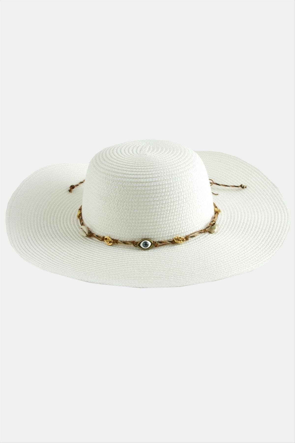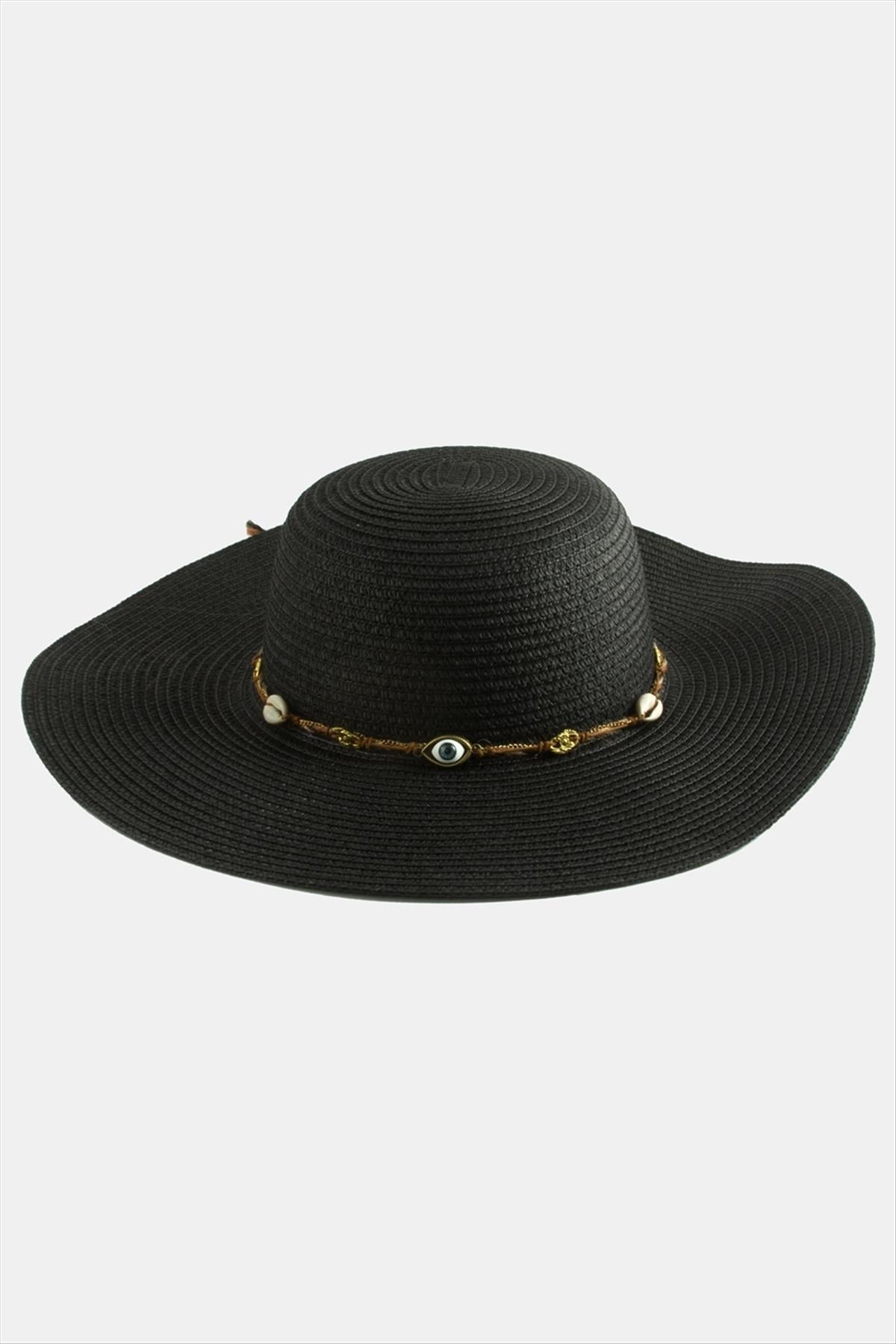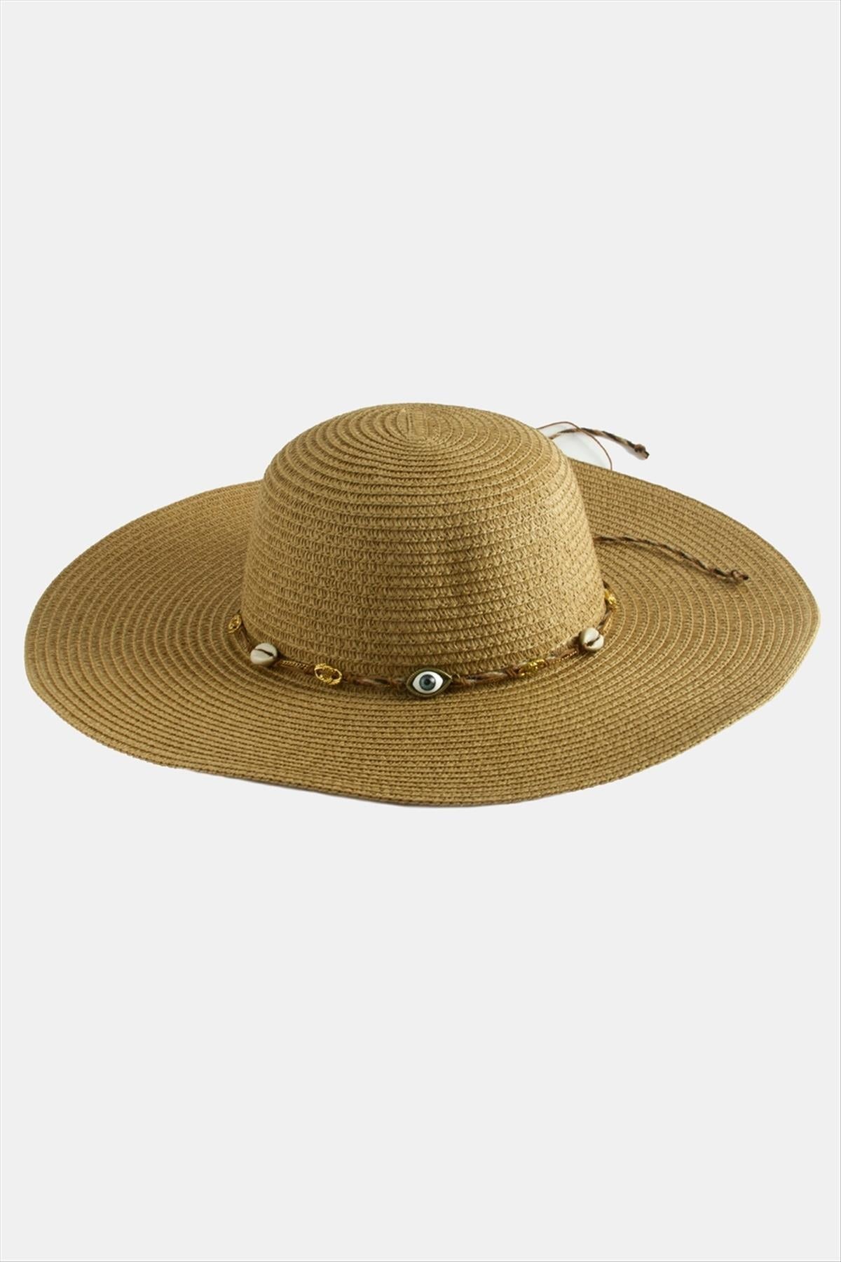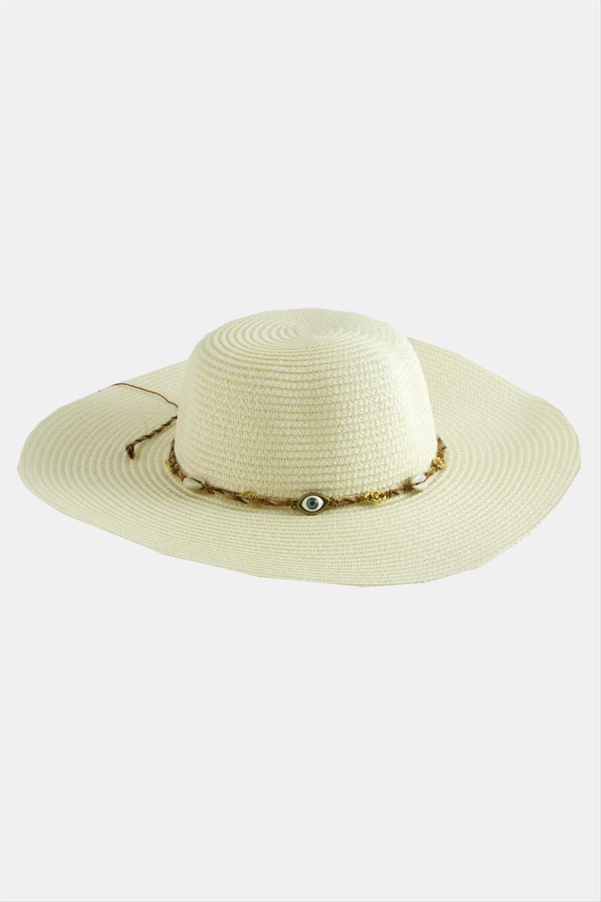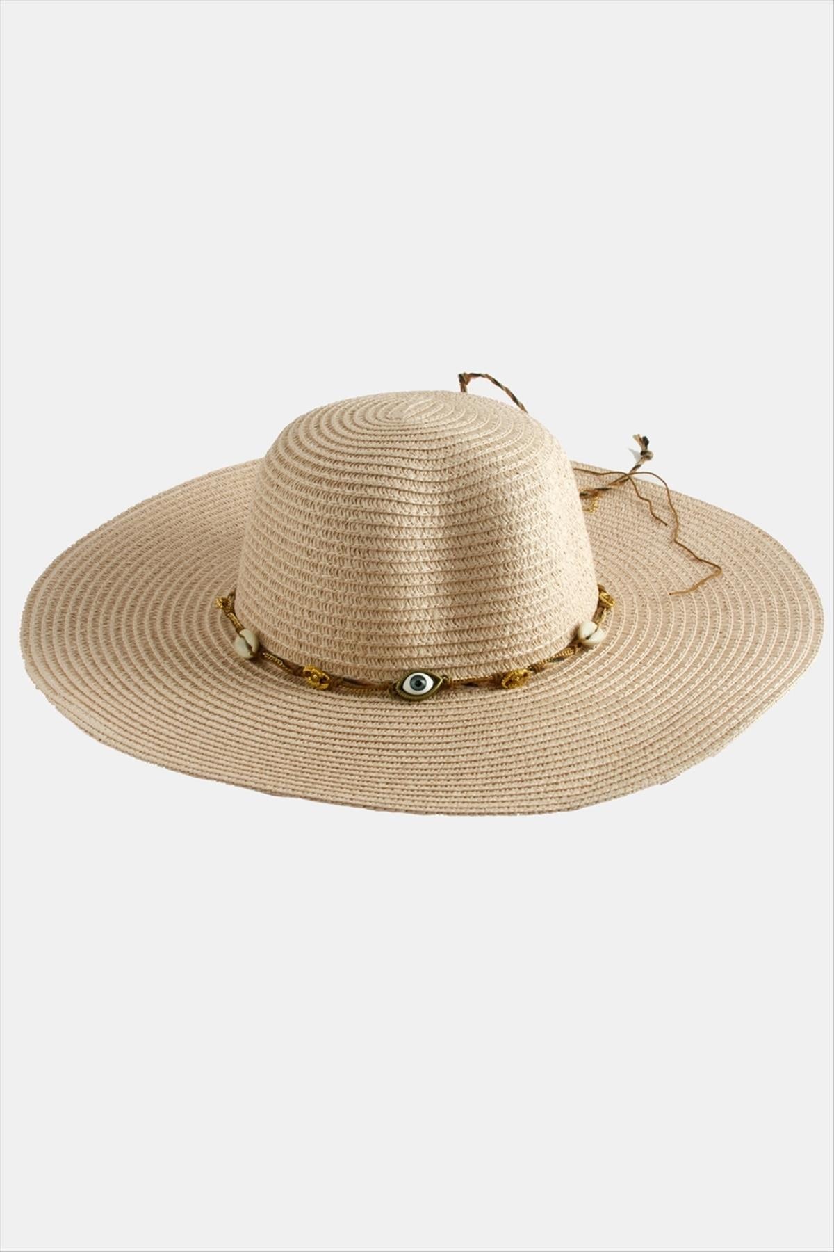 Hasır Şapka; Ürün malzemesi hasır malzemeden üretilmiştir. Hasır plaj şapkası çapı 40 cm, şapka iç çapı 19 cm ve yüksekliği 11 cmdir. Ürün 360 derece siperlidir. Ürün kafa çapı 58 cmdir. İçersinde ayarlamak için ip bulunur.