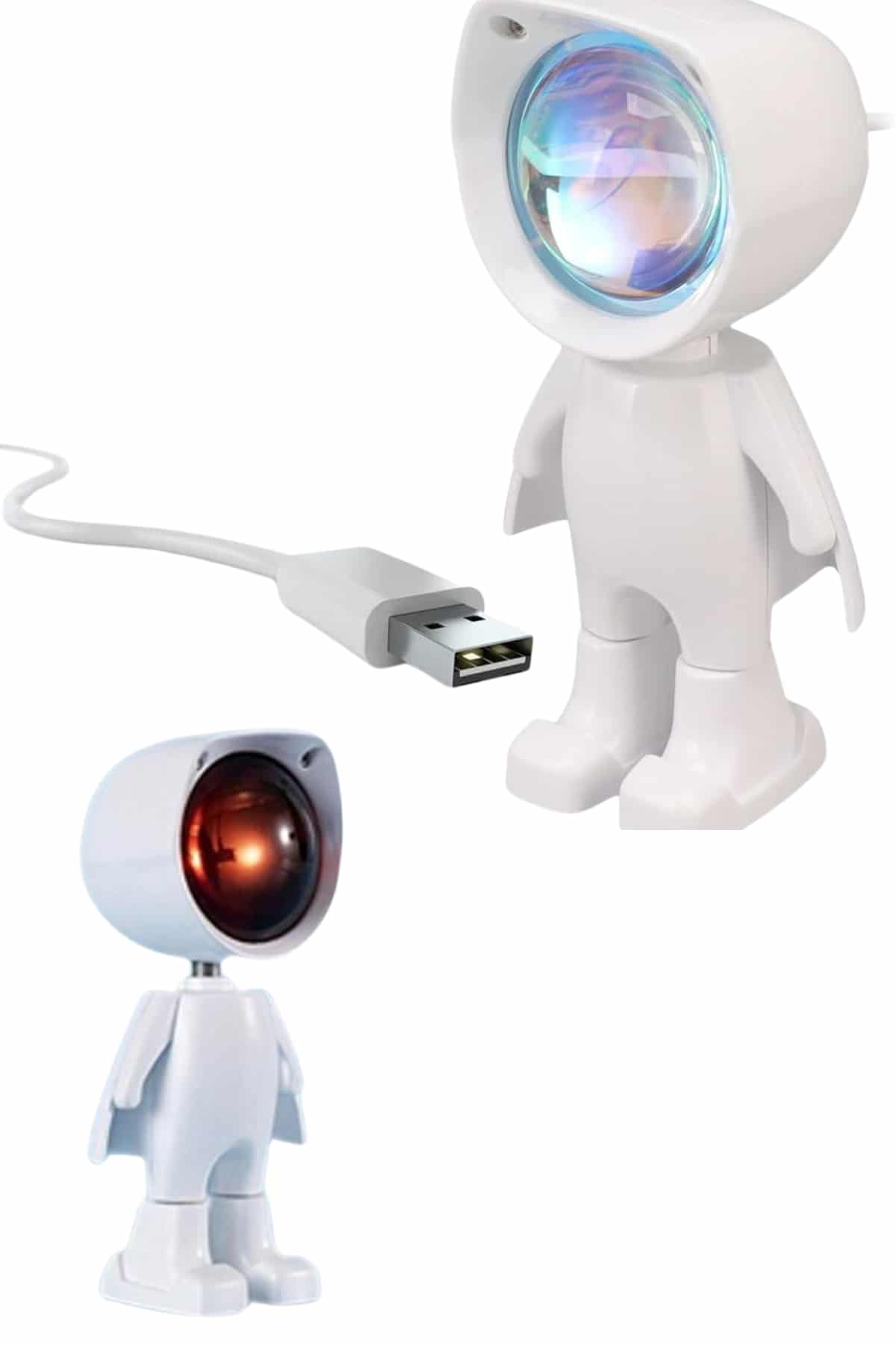 Bu gün batımı efektli dekoratif lamba, sevimli astronot tasarımıyla yalnızca bir aydınlatma aracı değil, aynı zamanda bulunduğu ortama karakter katan şık bir obje olarak öne çıkar. Gün batımı ışık tonlarıyla mekanlara sıcaklık ve romantizm katan bu lamba, özellikle estetik detaylara önem veren kullanıcılar için tasarlanmıştır. Minimalist boyutları sayesinde ister evde ister dış mekânda kolaylıkla kullanılabilir. Işık kaynağı olarak kullanılan 5 Watt’lık LED, enerji tasarrufuyla birlikte uzun ömürlü ve göz yormayan yumuşak bir aydınlatma sunar. Lamba kafasının 360 derece yatay ve 60 derece dikey hareket edebilmesi, ışığın yönünü ihtiyacınıza göre özgürce ayarlayabilmenizi sağlar. Böylece ister tavanı ister bir duvarı yumuşak bir gün batımı tonuna bürüyebilir, ister kitap okurken odaklı bir ışık elde edebilirsiniz. Dokunmatik kontrol paneli, kullanım kolaylığı sağlayarak lambayı açma, kapama ve parlaklık ayarı yapma imkânı tanır. Aynı zamanda şarjlı kullanım özelliği sayesinde priz bağımlılığını ortadan kaldırır; tam dolu batarya ile 3-4 saate kadar kesintisiz ışık sunar. USB kablosu ile kolayca şarj edilir ve kullanıma hazır hale gelir. Sadece ev içinde değil, seyahatlerde, kamp etkinliklerinde ya da fotoğraf ve video çekimlerinde de kullanılabilecek şekilde tasarlanmış olan bu ürün, yaratıcı ışık efektleriyle fotoğraflarınıza benzersiz bir hava katabilir. Özellikle yatak odası, oturma odası ya da çalışma alanlarında hem şıklık hem de işlevsellik isteyen kullanıcılar için ideal bir seçenektir. Gece lambası olarak da kullanılabilen bu astronot temalı ışık, huzur veren tonlarıyla uykuya geçişi kolaylaştırır. Romantik ambiyanslar yaratmak isteyenler için mükemmel bir atmosfer sağlayan bu ürün, hediye alternatifi olarak da oldukça dikkat çekici ve anlamlıdır.