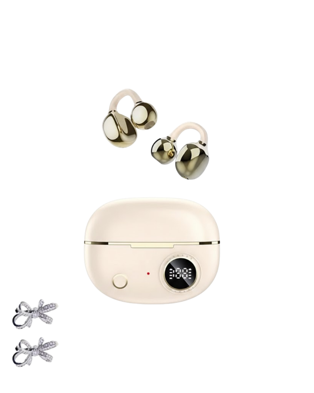 Kulak klipsli Bluetooth kulaklık, ergonomik tasarımı ile gün boyu konforlu kullanım sunar. Eller serbest iletişim imkânı sağlayarak iş ve günlük yaşamı kolaylaştırır. Kompakt yapısı sayesinde her an yanınızda taşıyabilirsiniz. Uzun pil ömrü ile kesintisiz bağlantı sağlar. Net ses çıkışı, aramalar sırasında kaliteli bir deneyim sunar. Zarif tasarımı, sade ve şık bir görünüm kazandırır. 2 kurdele küpe hediyeli olarak gönderilen bu set, hem kullanışlı hem de estetik bir tercih sunar.