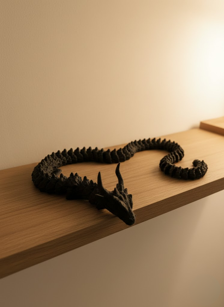 Hareketli Siyah Ejderha Figür Uzun Gövdeli Fantastik Masa ve Raf Dekoru