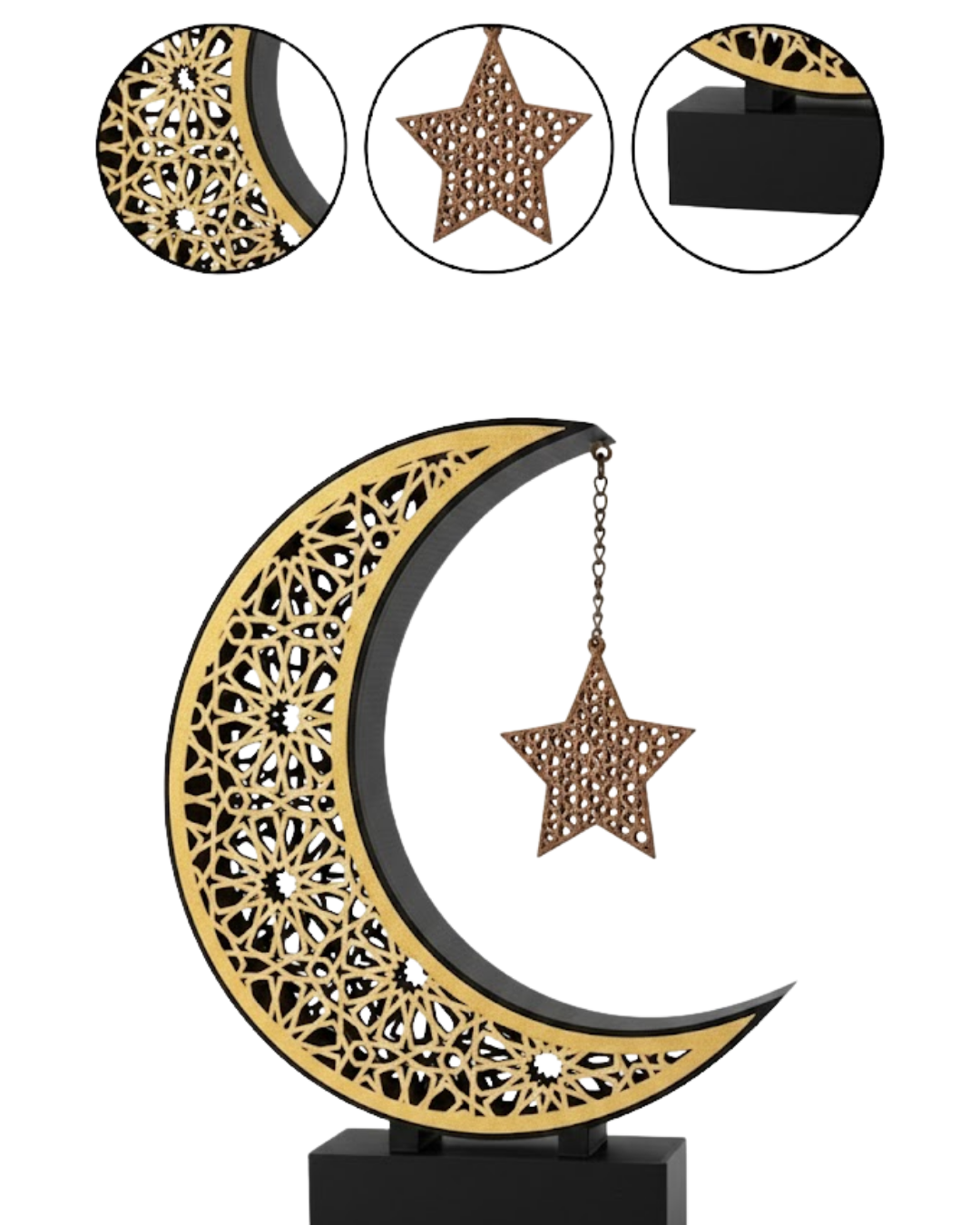3D Hilal Yıldız Ramazan Dekoru 23x23 cm, anlamlı ve estetik bir dekoratif üründür. Masa üstü, raf ve konsol alanlarında rahatlıkla kullanılabilir. Zarif tasarımı sayesinde bulunduğu ortamda huzurlu ve şık bir ambiyans yaratır.