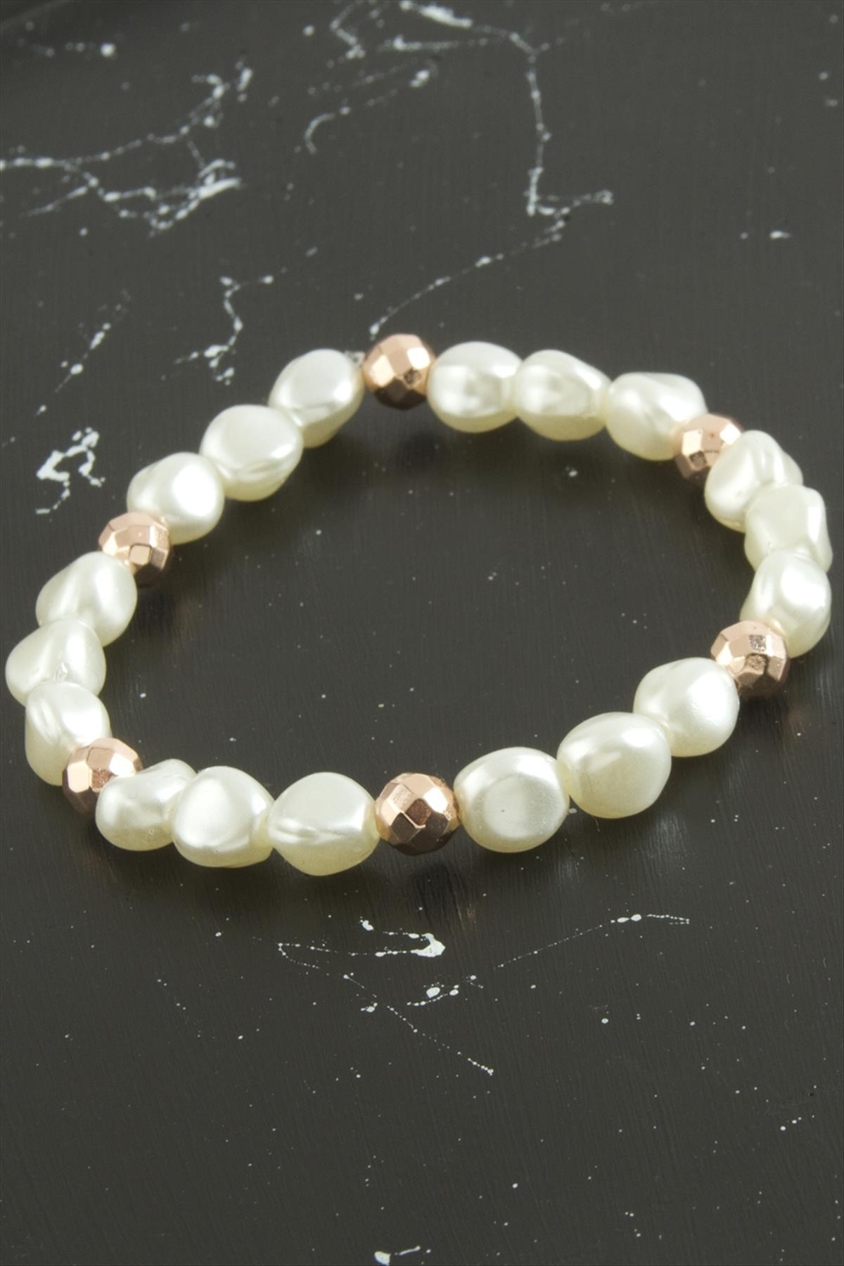 Bileklik; Ürün malzemesi inci ve hematit taşından imal edilmiştir. Misina üzerine dizilmiştir. Hematit boyu 6 mmdir.