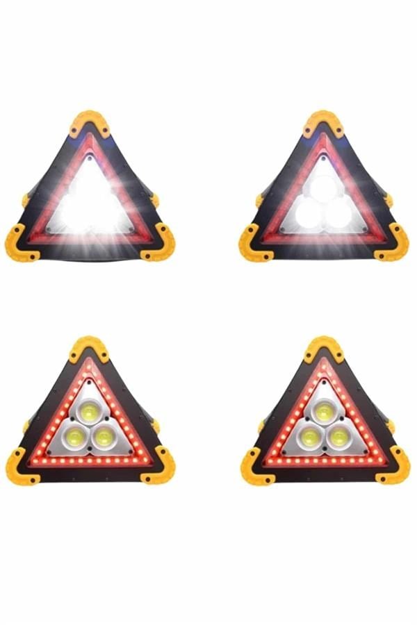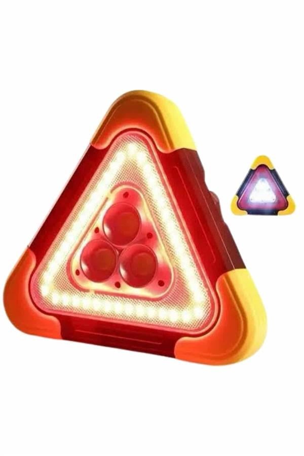 Işıklı İkaz Lambası Reflektör Şarjlı Işıklı Üçgen LED Acil Durum Feneri