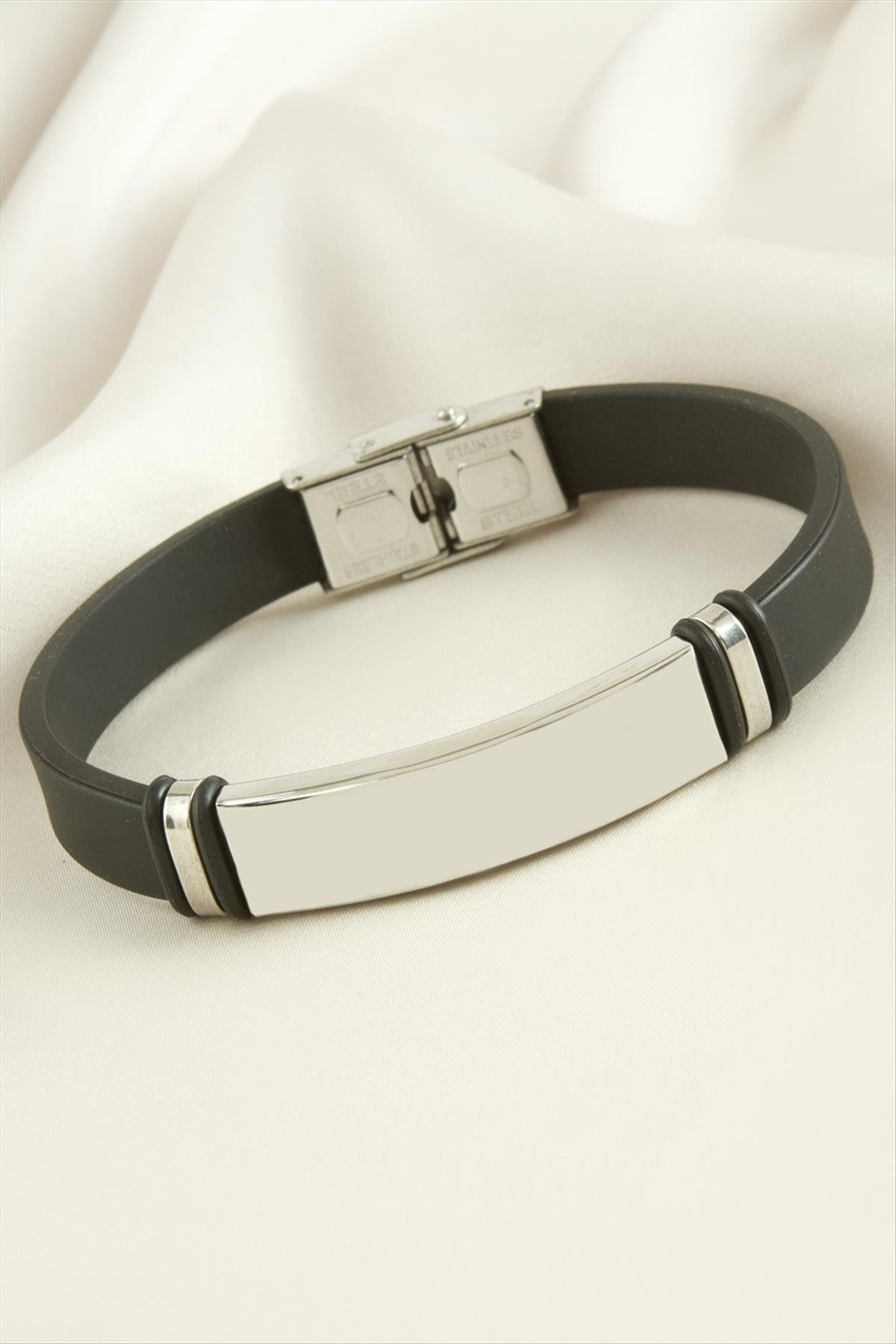 Bileklik; Ürün malzemesi çelik ve silikondur. 1 sınıf kaliteli malzemeden üretilmiştir. Bileklik boyu 21 cmdir. İsim yazılabilir çelik aparat boyu 4 cmdir. Ucu kilitlidir. Bileklik yazısız olarak gönderilecektir.