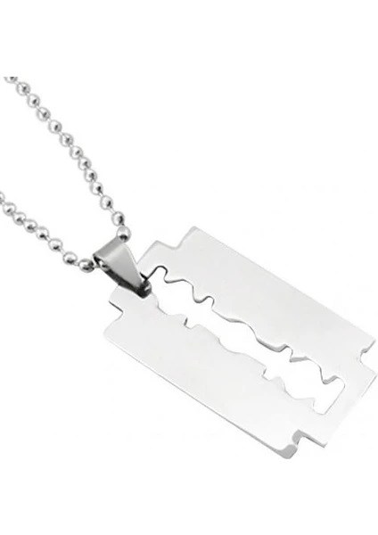 Jilet Çelik Kolye - Jilet Model Paslanmaz Gümüş Renk Çelik Kolye