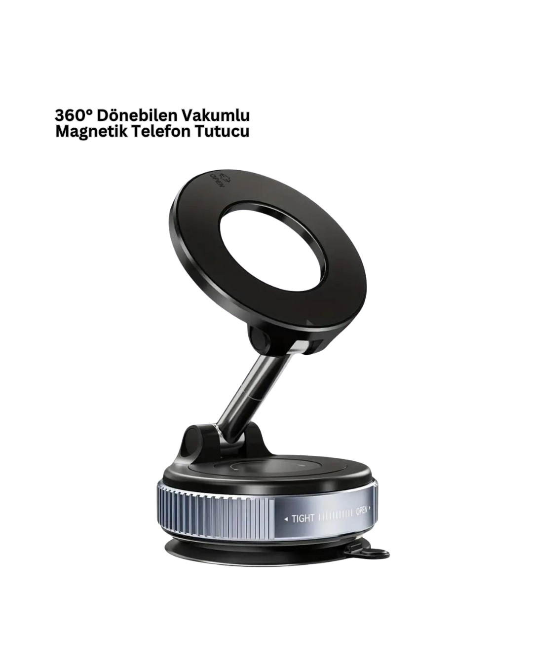 Manyetik vakumlu araç telefon tutucu, pratik kullanım ve güvenliği bir arada sunar. Güçlü mıknatıs yapısı, telefonu en zorlu yol koşullarında bile sabit tutar. Vakumlu montaj sistemi, sağlam ve iz bırakmayan bir kullanım sağlar. 360 derece dönebilen tasarımı, ideal görüş açısını kolayca ayarlamanıza olanak tanır. Alüminyum alaşımlı gövde, dayanıklılık ve şıklığı bir arada sunar. Silikon pedler, telefonunuzu çizilmelere karşı korur. 4.7 inç ve üzeri tüm akıllı telefonlarla uyumlu olan bu ürün, günlük sürüşlerde ve uzun yolculuklarda güvenilir bir araç içi aksesuardır.