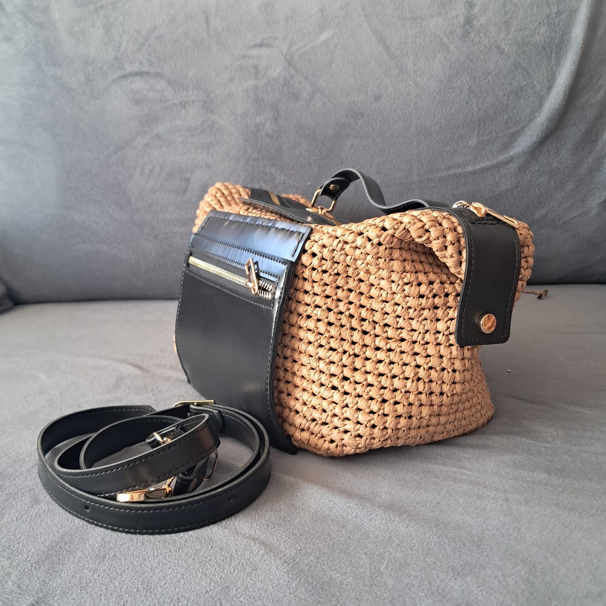 Genişlik 30 cm. Taban 12×25 Çanta özel bir rafya olan milano rafya ile örülmüştür.İçi astarlı,kapama mıknatıslıdır.Günlük,ofis ve spor kıyafetlerinize eşlik edecek şık bir çantadır.