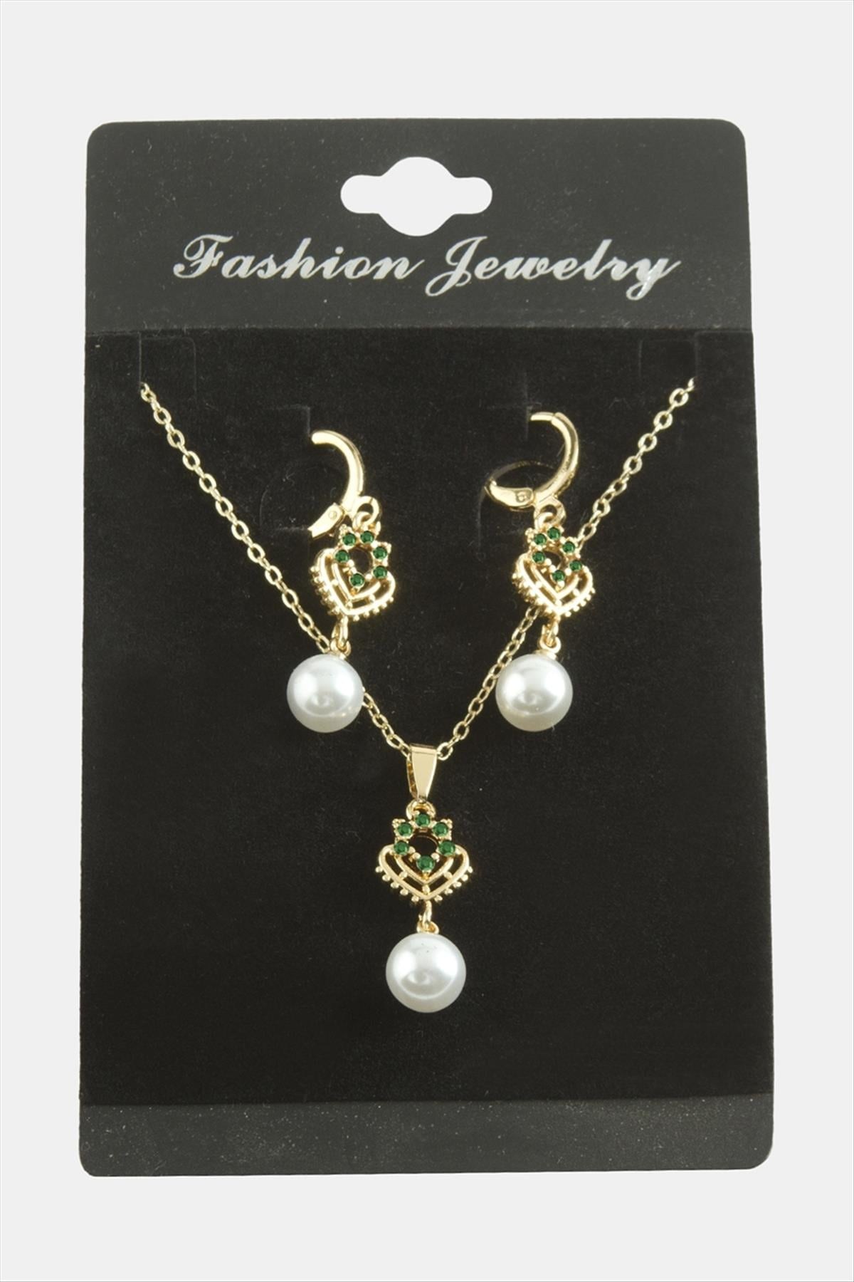 Kolye; Ürün malzemesi metal ve zirkon taştan üretilmiştir. 1 sınıf kaliteli malzeme kullanılmıştır. Ürün 1 adet kolye, ve 1 adet çift küpe vardır. Ürün zincir uzunluğu 45 santimdir. Ürün ucundaki taşlı aparat boyu 2 cmdir.