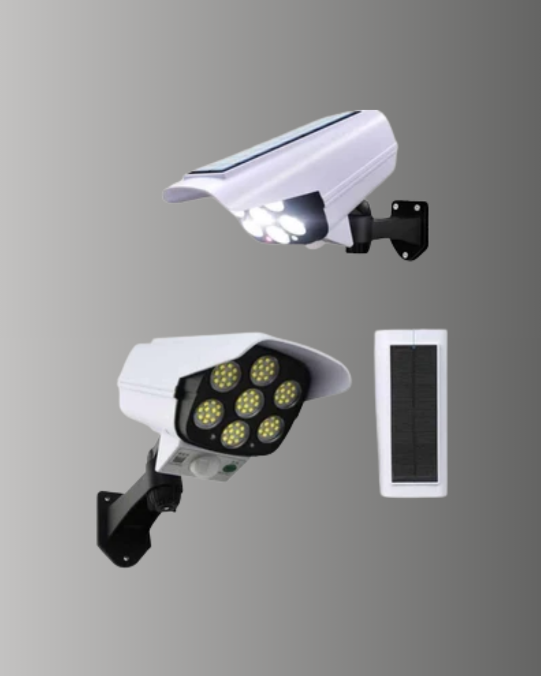 Bu 2’si 1 arada güneş enerjili dış mekân lambası, 77 LED ışık kaynağı ve  güvenlik kamerası tasarımıyla hem aydınlatma hem de caydırıcı güvenlik çözümü sunar. Gün boyunca entegre polisilikon güneş paneli (5.5V / 300mA) sayesinde enerjisini güneşten alır, akşamları ise dahili 2400mAh kapasitesindeki çift 18650 lityum pil ile kesintisiz aydınlatma sağlar. 8 ila 10 saate kadar aralıksız çalışabilen güçlü bataryasıyla evinizin çevresinde güvenliği artırır. 77 adet yüksek parlaklık sağlayan SMD LED boncuğu ile geniş bir alanı aydınlatabilen bu lamba, özellikle bahçe, garaj, sundurma, giriş kapısı ve yürüyüş yolları için idealdir. Ürün, farklı ihtiyaçlara uygun olarak seçilebilecek 3 farklı akıllı aydınlatma moduna sahiptir: Işık kapalıyken sadece kırmızı ışık yanar, hareket algılandığında güçlü beyaz ışık açılır. Sürekli zayıf ışık açık kalır, hareket algılandığında yüksek parlaklığa geçer. Her zaman açık modda beyaz ışık sabit yanar ve kırmızı uyarı ışığı da çalışır. Dahili PIR hareket sensörü, 120° algılama açısında 5–8 metre mesafeye kadar insan hareketlerini tespit edebilir. Sensör, hareket algılandığında ışığı otomatik olarak yakar ve 20 saniye sonra tekrar kapatır. Sağlam ve hafif yapılı (431g) bu ürün, kaliteli PVC + PC malzemeden üretilmiştir. IP65 su geçirmezlik derecesi sayesinde yağmur, kar ve toz gibi zorlu dış hava koşullarında bile performansından ödün vermez. Lambanın ve güneş panelinin yönü kolayca ayarlanabilir, bu da optimum güneş alma ve ışık yönlendirme açısını kullanıcıya bırakır. Kurulumu oldukça kolaydır. Kablolama gerekmeden, sadece vida ile sabitleyerek kullanıma hazır hâle gelir. Şehir elektriğine ihtiyaç duymadan, çevre dostu bir şekilde enerji üretir ve kullanır. Ürün Teknik Özellikleri: Güneş Paneli: 5.5V / 300mA polisilikon Pil: 2 x 18650 lityum (3.7V 1200mAh) – Toplam 2400mAh Işık Kaynağı: 77 SMD LED Malzeme: PVC + PC Renk Sıcaklığı: Beyaz Algılama Mesafesi: 5–8 metre Algılama Açısı: 120° Aydınlatma Süresi: 8–10 saat İndüksiyon Süresi: 20 saniye Ağırlık: 431g Renk: Beyaz gövde, beyaz ışık