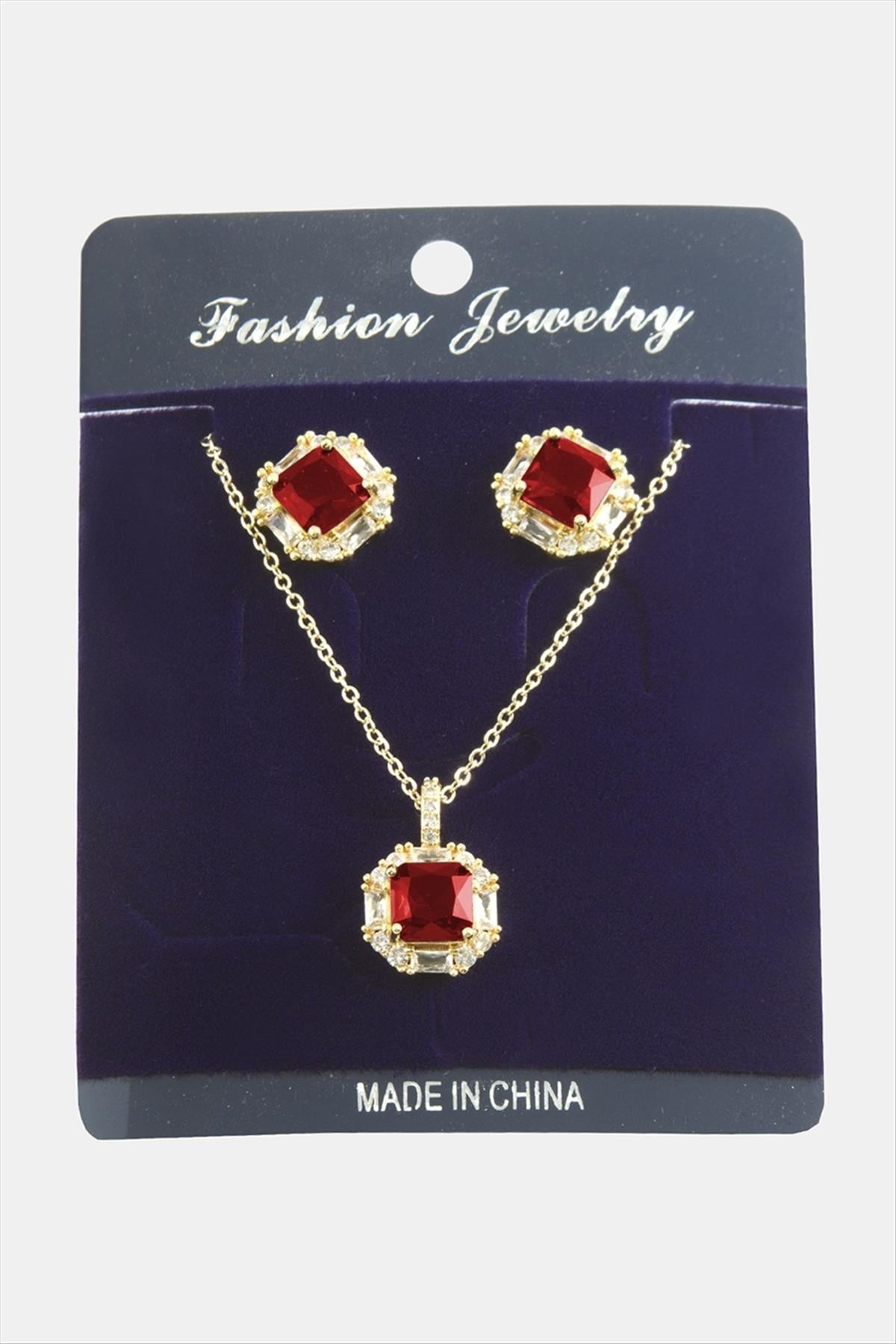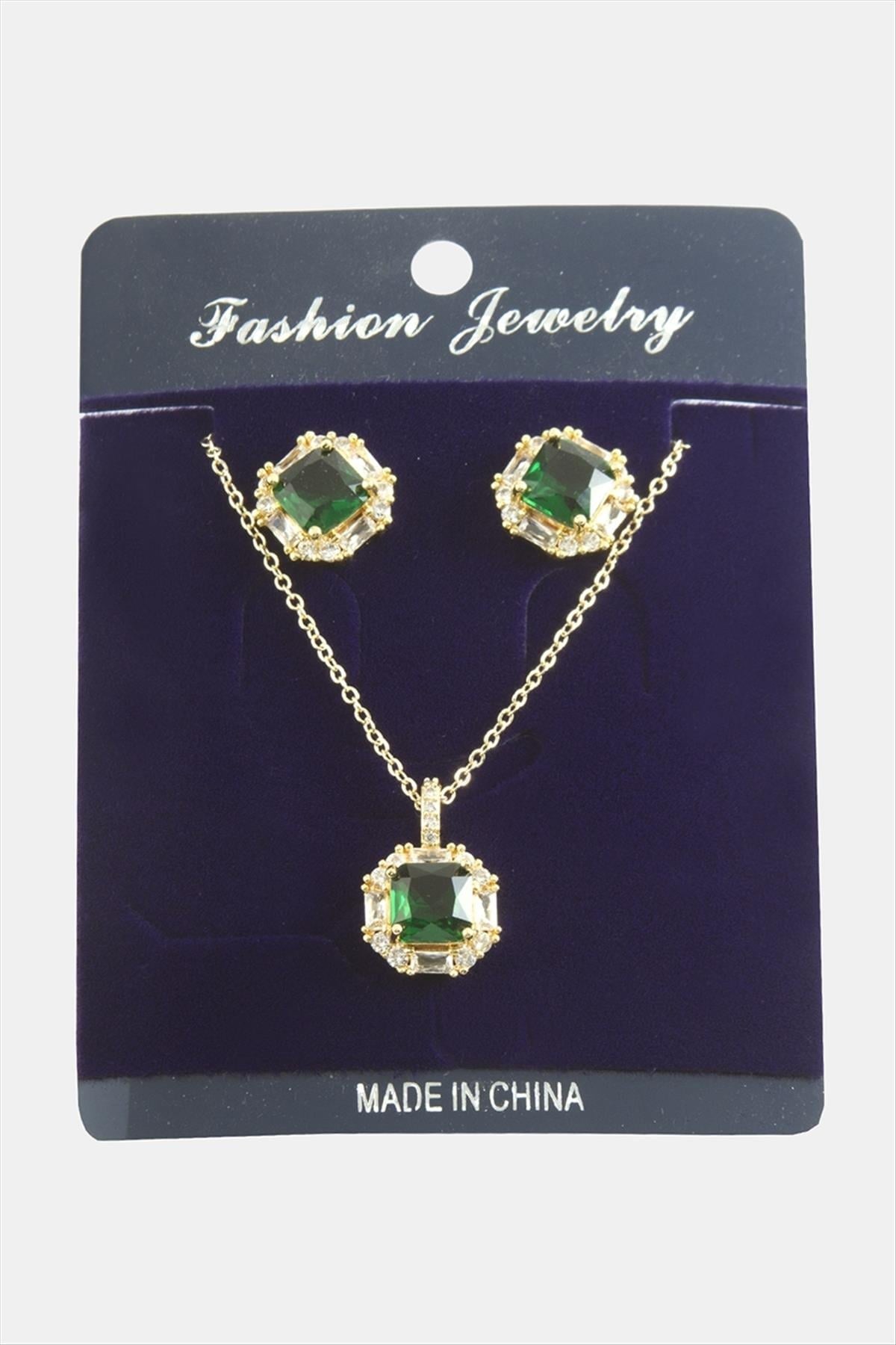 Kolye; Ürün malzemesi metal ve zirkon taştan üretilmiştir. 1 sınıf kaliteli malzeme kullanılmıştır. Ürün 1 adet kolye, ve 1 adet çift küpe vardır. Ürün zincir uzunluğu 45 santimdir. Ürün ucundaki taşlı aparat boyu 1,5 cmdir.