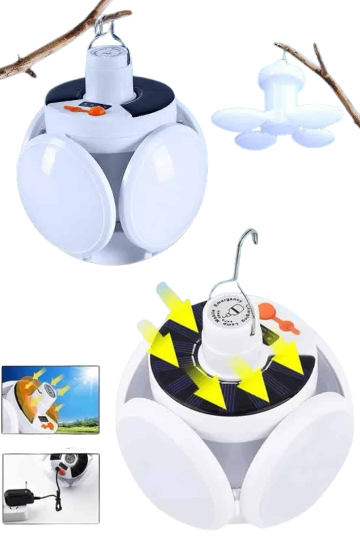 Katlanabilir Askılı Kamp Lambası 5 Kanatlı Pratik Güneş Enerjili