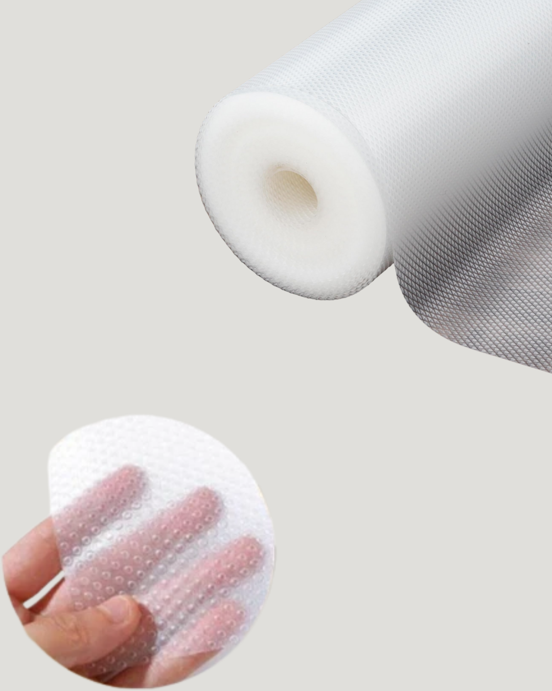 Kaydırmaz şeffaf raflık, günlük yaşamda konfor ve düzen arayanlar için ideal bir çözümdür. 3 metre uzunluğa sahip bu raf astarı, dolaplarınızda eşyaların kaymasını önleyerek düzeni artırır. Kaliteli EVA malzeme ile üretilmiş olup çevre dostudur, yiyeceklerle temas için güvenlidir ve BPA içermez. Şeffaf yapısı sayesinde dolap veya çekmecelerinizin doğal rengini kapatmaz, estetik bir bütünlük sağlar. Kaydırmaz yüzey dokusu eşyaların sabit kalmasını sağlarken, su ve yağ geçirmez özelliği temizliği kolaylaştırır. Dolaplarınızda oluşabilecek nem, toz ve kirleri önler. Leke tuttuğunda nemli bir bezle silinebilir ya da suyun altında kolayca yıkanabilir. Dayanıklı yapısı sayesinde defalarca kullanılabilir. Mutfağın yanı sıra banyo, buzdolabı, ayakkabılık, vestiyer ve ofis çekmecelerinde de kullanılabilir. İhtiyacınıza göre kolayca kesilip farklı boyutlara uyarlanabilmesi sayesinde çok yönlü bir kullanım sunar. Masa örtüsü veya bardak altlığı olarak bile kullanılabilir. Pratik, fonksiyonel ve uzun ömürlü yapısıyla evinizde düzeni sağlamanın en ekonomik yollarından biridir.