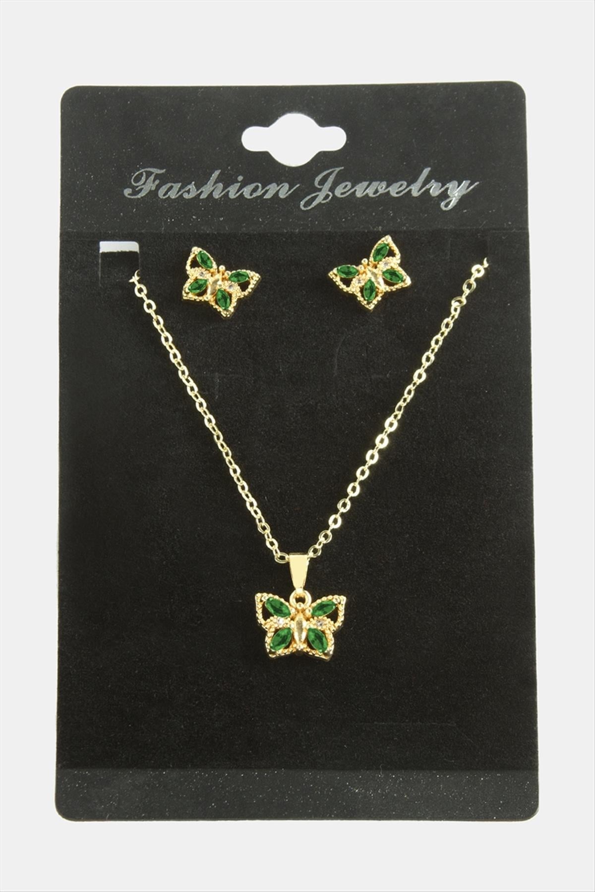 Kolye; Ürün malzemesi metal ve zirkon taştan üretilmiştir. 1 sınıf kaliteli malzeme kullanılmıştır. Ürün 1 adet kolye, ve 1 adet çift küpe vardır. Ürün zincir uzunluğu 45 santimdir. Ürün ucundaki taşlı aparat boyu 1 cmdir.