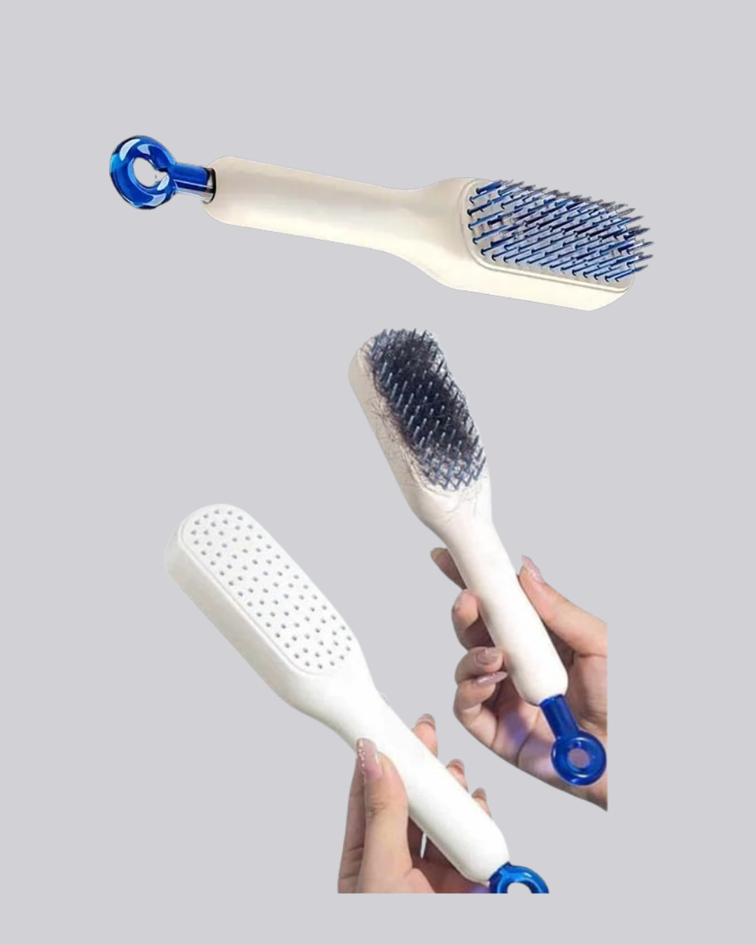 Kendini Temizleyen Ergonomik Saç Tarağı – ABS Gövde, Silikon Diş