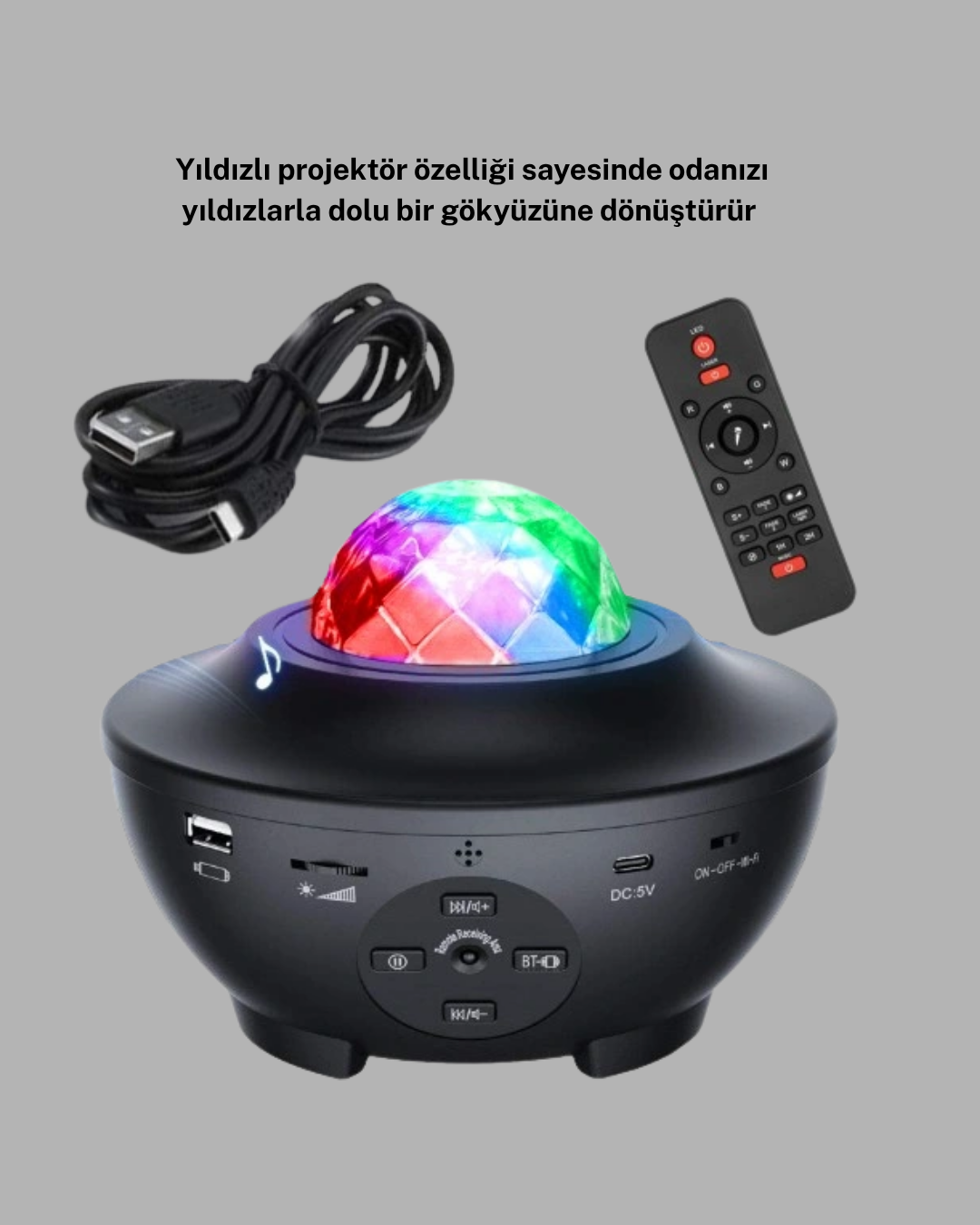 Yıldızlı projektör, evinizi gökyüzüyle buluşturan ve özel anlarınıza büyülü bir hava katan güçlü bir atmosfer aydınlatma cihazıdır. Yıldız efektleri ve galaksi görünümü sayesinde duvarlarda ve tavanda benzersiz bir görsel şölen oluşturur. Farklı renk seçenekleri ile odanın havasını saniyeler içinde değiştirebilir, ister huzurlu ister enerjik bir ambiyans yaratabilirsiniz. Projektörün ayarlanabilir parlaklık seviyeleri, kullanıcıya tam kontrol imkânı sunar. Loş bir gece ışığı, dinlendirici bir meditasyon ortamı veya etkileyici bir parti atmosferi… Hepsi tek bir cihazla mümkündür. Renkli ışık kombinasyonları çocuklar için masalsı bir uyku ortamı oluştururken yetişkinler için estetik ve şık bir dekoratif aydınlatma sunar. Cihazın kullanım kolaylığı sayesinde her yaş grubu rahatlıkla kullanabilir. Üzerindeki butonlarla renk modu, parlaklık seviyesi ve galaxy efekti hızlı şekilde değiştirilebilir. Hafif ve taşınabilir olması, projektörü ev içinde dilediğiniz yere taşımanızı sağlar. Yatak odası, salon, çalışma odası, çocuk odası, parti ortamı gibi pek çok alanda kullanılabilir. LED ışık teknolojisi, düşük enerji tüketimiyle uzun süreli kullanım sağlar. Ayrıca düşük ısı yaydığı için güvenli bir kullanım deneyimi sunar. Sessiz çalışma özelliği, uyku ve meditasyon sırasında rahatsızlık yaratmaz. Hem dekorasyon hem fonksiyon olarak ön plana çıkan yıldızlı projektör, yaşam alanlarınıza modern, etkileyici ve rahatlatıcı bir ışık atmosferi katar. Özel günlerde, romantik anlarda veya çocukların uyku saatlerinde kullanabileceğiniz çok yönlü bir aydınlatma çözümüdür.