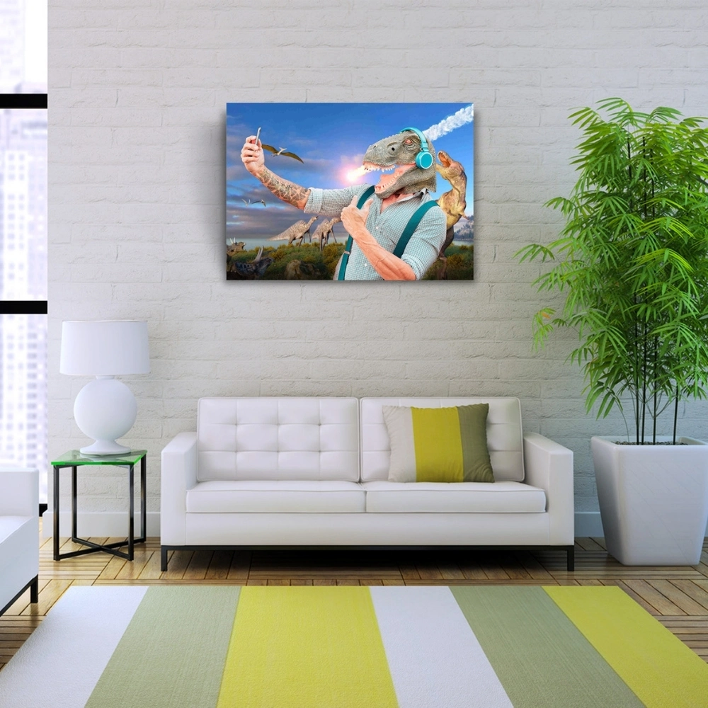 Mavi Tonlarda Dinazor Başlı Adam Resmi Kanvas Tablo 50 x 70