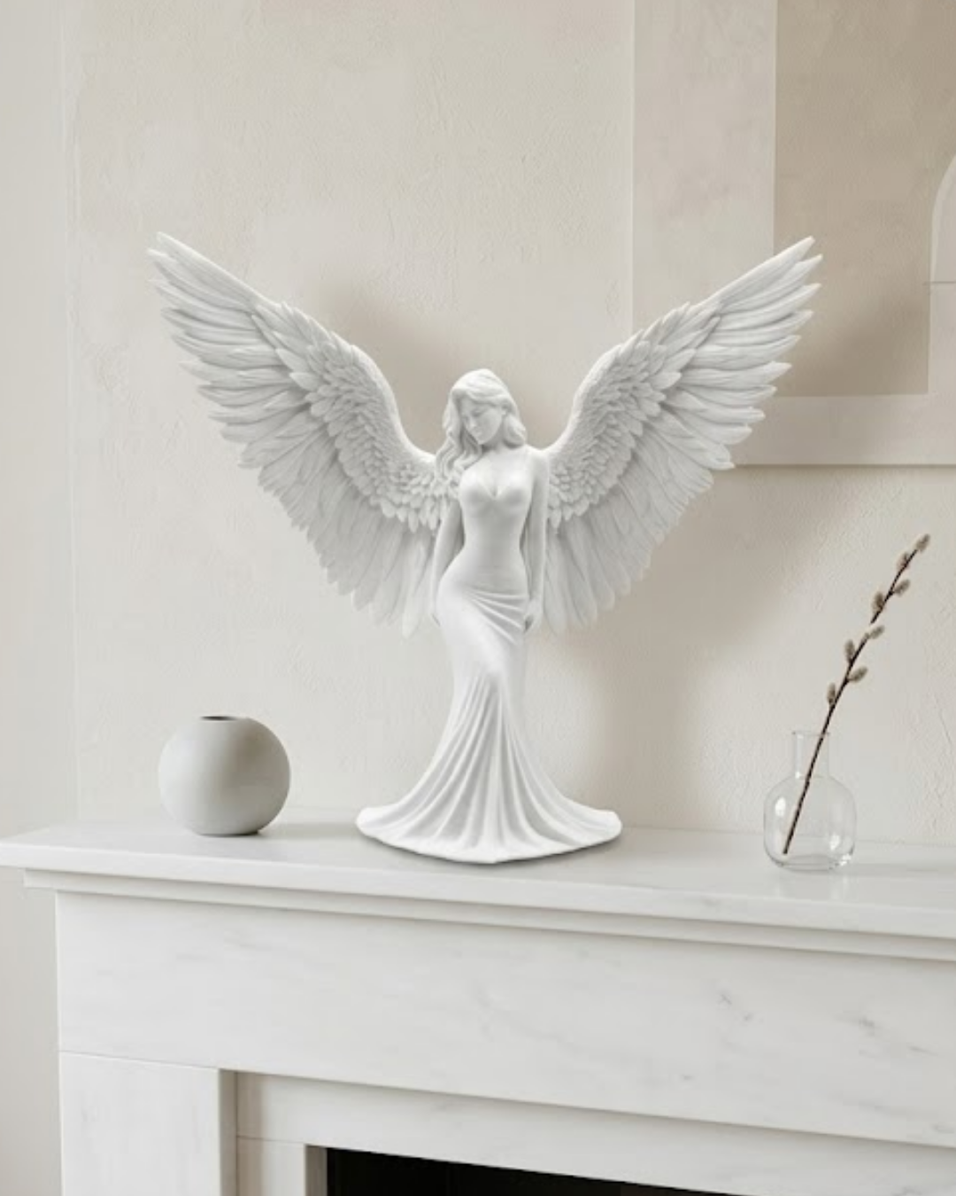 Melek insan figürlü 3D dekoratif heykel biblo, zarif tasarımı ve sanatsal görünümü ile ev dekorasyonunda dikkat çeken estetik dekoratif objelerden biridir. Kanatlarını iki yana açmış melek figürü, huzur, koruma, zarafet ve saflık gibi anlamları temsil eden güçlü bir semboldür. Bu nedenle melek figürlü dekoratif ürünler yaşam alanlarında hem anlamlı hem de estetik bir atmosfer oluşturmak için sıklıkla tercih edilir. Modern tasarım anlayışı ile üretilen bu 3D dekoratif heykel, bulunduğu ortama zarif bir dokunuş kazandırır. 3D baskı teknolojisi ile üretilmiş olan bu dekoratif biblo, detaylı kanat yapısı ve akıcı figür tasarımı ile oldukça dikkat çekici bir görünüm sunar. Melek figürünün geniş kanatları ve zarif duruşu ürüne sanatsal bir karakter kazandırırken aynı zamanda bulunduğu ortamda estetik bir odak noktası oluşturur. Elbisenin akıcı formu ve figürün dengeli duruşu dekoratif heykelin bir sanat eseri gibi görünmesini sağlar. Dekoratif melek figürlü heykel özellikle salon dekorasyonunda oldukça şık bir tamamlayıcı aksesuar olarak kullanılabilir. Konsol üzerinde, şömine rafında, kitaplık rafında veya sehpa üzerinde sergilendiğinde bulunduğu ortama huzurlu ve estetik bir atmosfer kazandırır. Aynı zamanda giriş alanlarında veya çalışma odalarında da dekoratif bir obje olarak kullanılabilir. Beyaz renkli sade tasarımı sayesinde modern dekorasyon, minimalist dekorasyon ve klasik dekorasyon stilleri ile uyum sağlayabilecek bir görünüme sahiptir. Bu özellik ürünü farklı dekorasyon tarzlarına sahip yaşam alanlarında kullanılabilir hale getirir. Açık renkli yüzeyi sayesinde bulunduğu ortamda ferah ve zarif bir görünüm oluşturur. Dekoratif melek insan figürlü 3D heykel biblo aynı zamanda anlamlı bir hediye alternatifi olarak da tercih edilebilir. Ev hediyesi, yeni ev hediyesi, doğum günü hediyesi veya özel gün hediyesi olarak verilebilecek estetik bir dekoratif üründür. Modern tasarımı, zarif figürü ve detaylı kanat yapısı sayesinde melek figürlü 3D dekoratif heykel biblo yaşam alanlarında huzur veren ve estetik bir atmosfer oluşturan şık bir dekoratif aksesuardır.