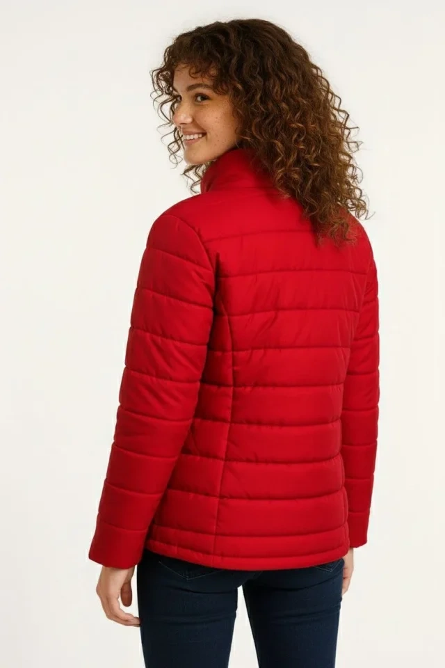 Mikro Su İtici Kapitone Baskılı Astarlı Fermuarlı Bomber Mont - Kırmızı