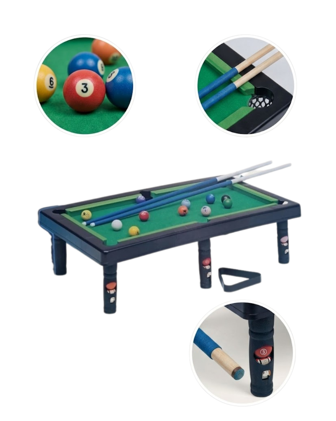 Mini bilardo seti, çocukların hem eğlenmesini hem de öğrenmesini sağlayan çok yönlü bir oyuncak olarak öne çıkar. Günümüzde çocukların ekran karşısında geçirdiği sürenin artması, ebeveynleri alternatif ve faydalı aktiviteler aramaya yönlendirmektedir. Bu noktada masaüstü bilardo seti, hem eğlenceli hem de geliştirici bir seçenek olarak dikkat çeker. Bu oyuncak bilardo seti, çocukların el-göz koordinasyonunu geliştirmesine yardımcı olur. İstekayı doğru açıyla kullanmak, hedefi belirlemek ve topu deliğe sokmak çocukların dikkat, odaklanma ve motor becerilerini artırır. Aynı zamanda sabır ve strateji geliştirme yeteneklerini destekler. Bu özellikleri sayesinde sadece bir oyuncak değil, aynı zamanda eğitici bir aktivite aracıdır. Ürün, çocuk sağlığına uygun malzemeler kullanılarak üretilmiştir. İçeriğinde zararlı kimyasallar bulunmaz ve güvenle kullanılabilir. Dayanıklı yapısı sayesinde uzun süreli kullanım imkanı sunar. Çocukların yoğun kullanımına rağmen kolay kolay deforme olmaz. Kurulumu oldukça basittir ve demonte olarak gönderilen parçalar kısa sürede birleştirilerek kullanıma hazır hale getirilebilir. Kutu içeriğinde yer alan masa, ayaklar, toplar, üçgen ve isteka sayesinde gerçek bir bilardo deneyimi mini boyutta sunulur. Ev ortamında rahatlıkla kullanılabilen bu set, aile bireylerinin birlikte vakit geçirmesine de olanak tanır. Çocuklar ebeveynleriyle oynarken sosyal bağlarını güçlendirir ve kaliteli zaman geçirir. Aynı zamanda arkadaşlarıyla oynadığında paylaşma ve sıra bekleme gibi sosyal beceriler kazanır.