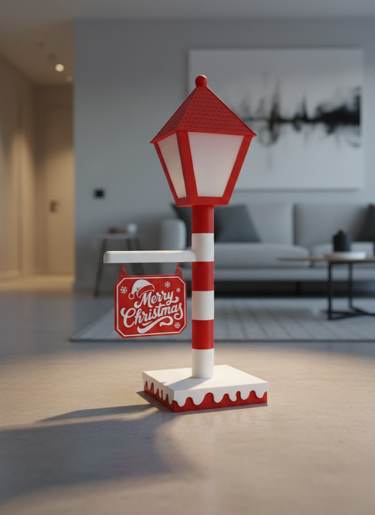 Klasik Noel tasarımından ilham alan Yılbaşı Tabelalı Dekoratif Lamba, kırmızı şapkalı direk formu ve asılı “Merry Christmas” tabelasıyla yılbaşı süslemelerine nostaljik bir dokunuş katar. 60 cm yüksekliği sayesinde bulunduğu ortamda hemen fark edilir ve dekorasyonun odak noktası haline gelir. Aparatlı yapısı sayesinde istenirse daha yüksek konumlandırılabilir, masa üstü, yer dekoru veya vitrin önü kullanımına uygundur. Yumuşak aydınlatması sayesinde ortamı boğmadan sıcak bir ışık yayar. Özellikle salon, antre, mağaza vitrini ve yılbaşı konseptli alanlarda şık bir görünüm sağlar. Yılbaşı dekorasyonunu tamamlamak isteyenler için hem dekoratif hem de aydınlatıcı bir üründür.