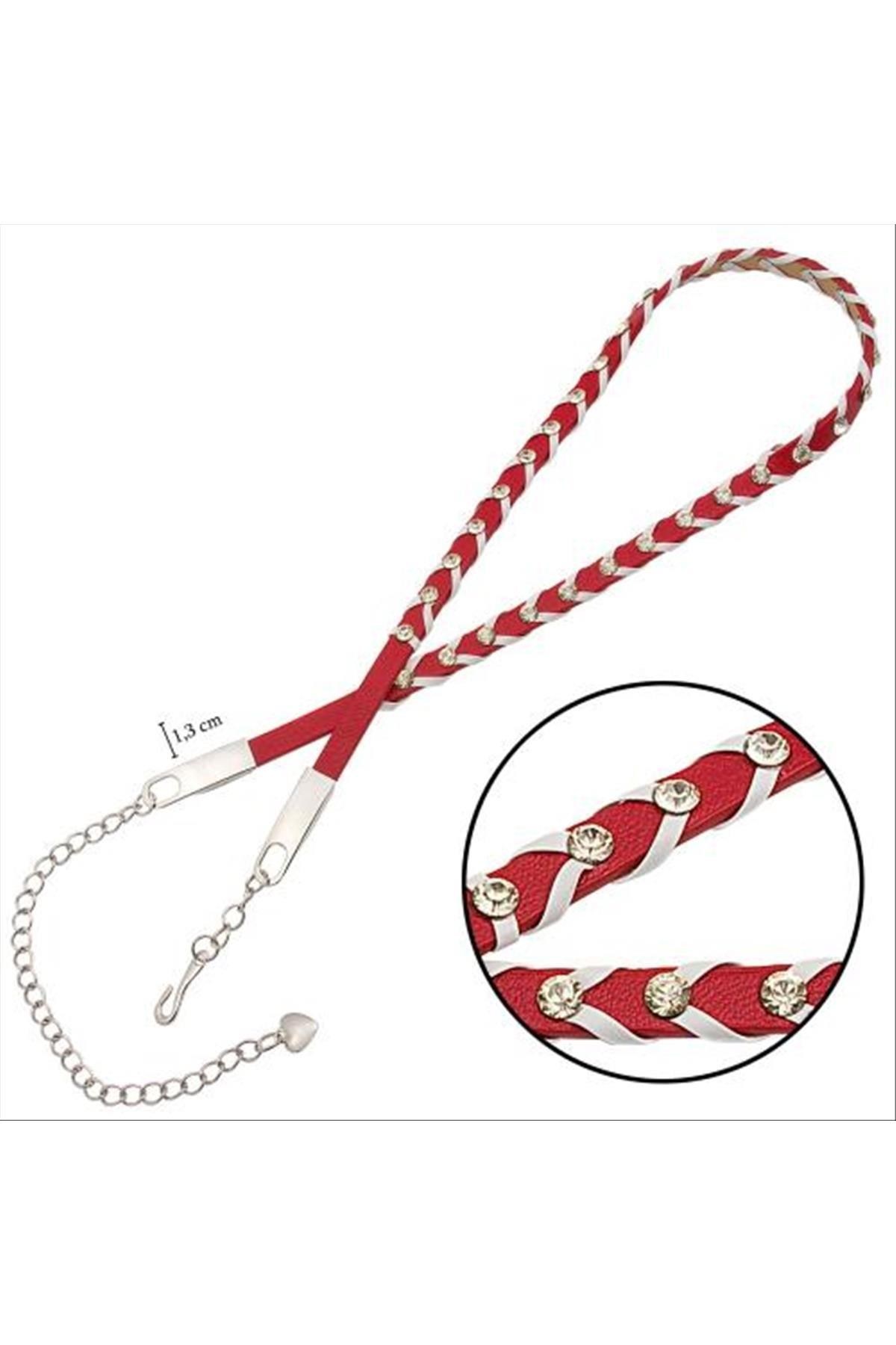 Örgü modelli kristal model taşlı ve ayarlanabilir zincirli deri kemer