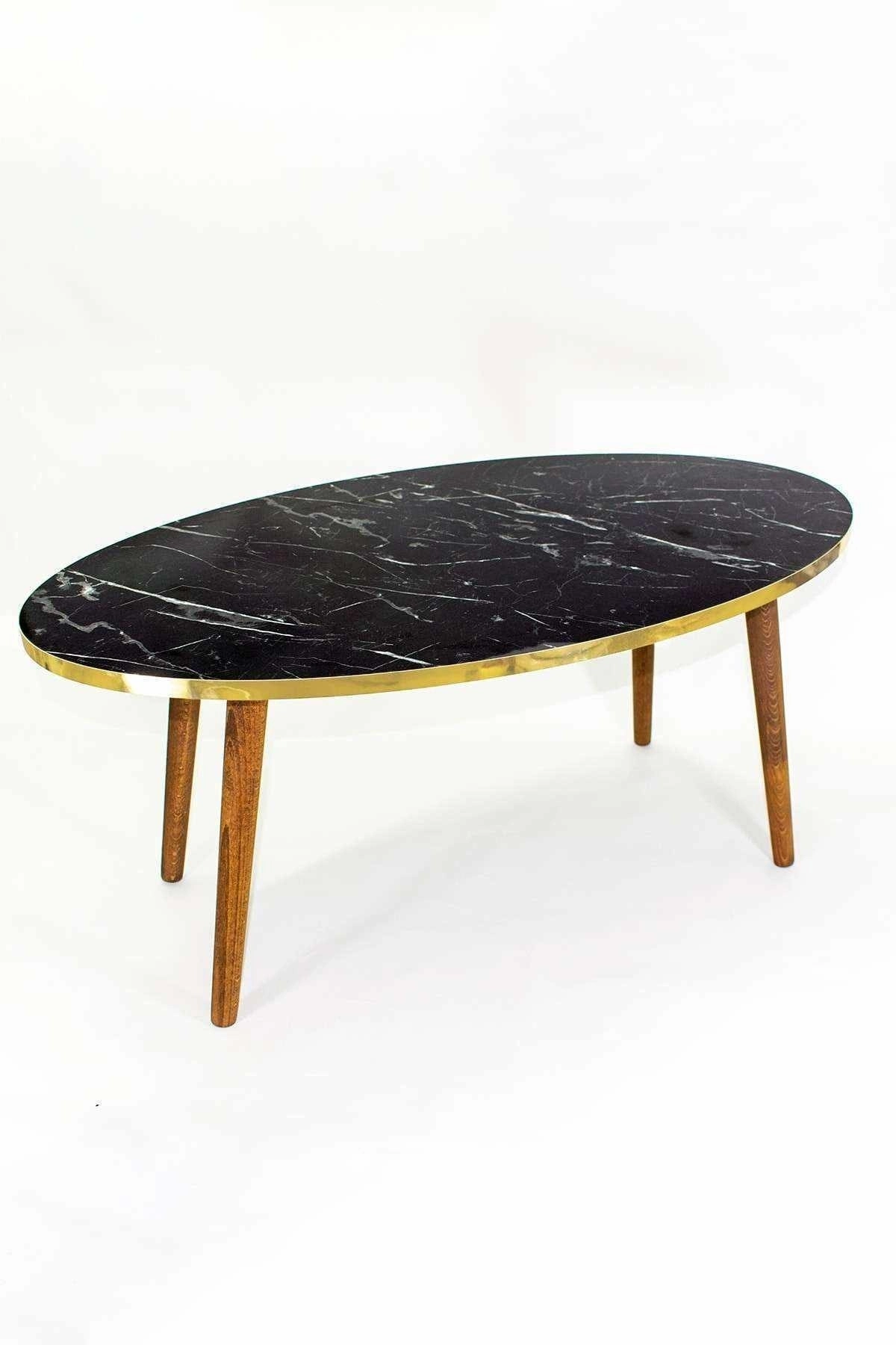 Orta Sehpa Ahşap Torna Ayak Elips Bendir Altın