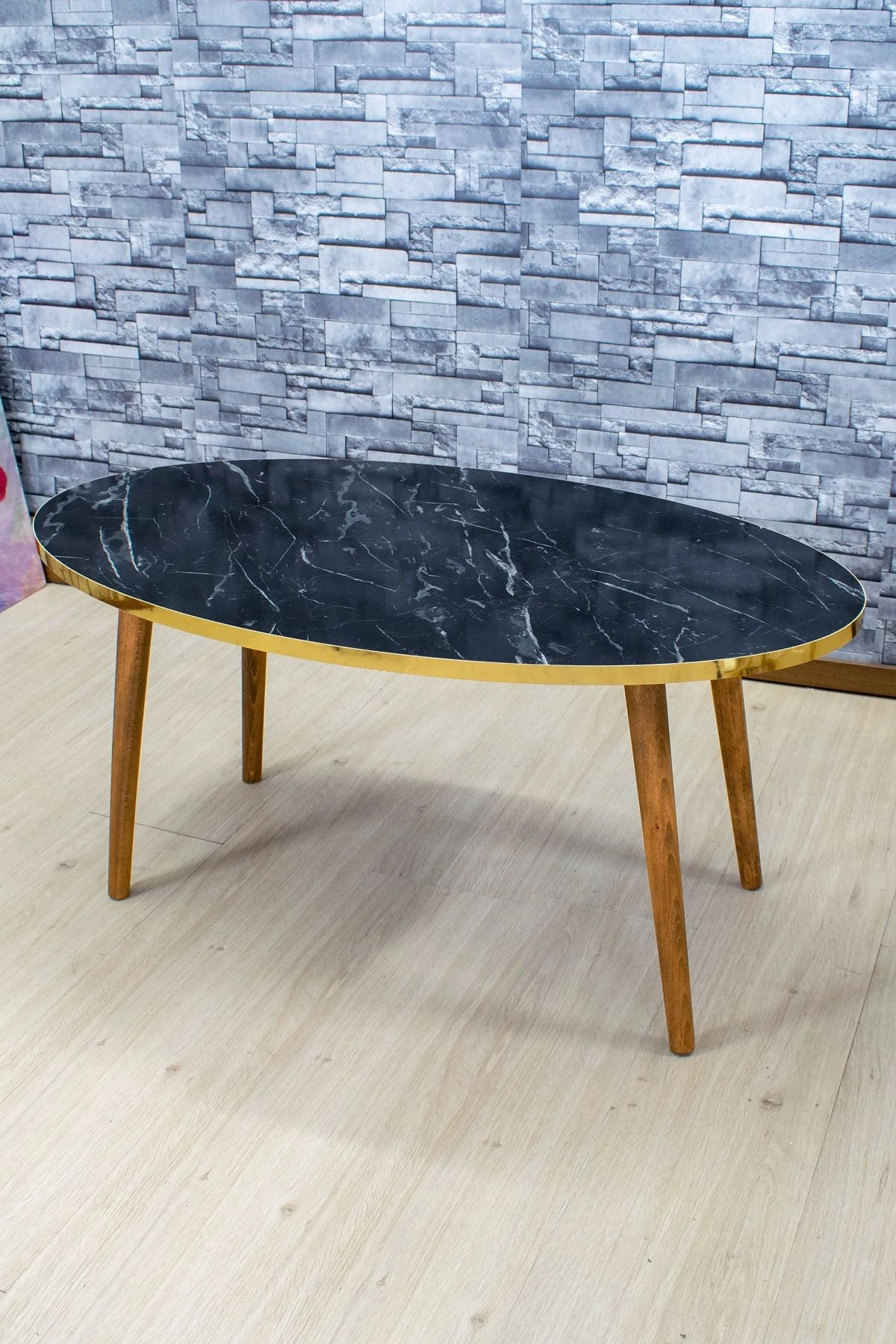 Orta Sehpa Ahşap Torna Ayak Elips Bendir Altın