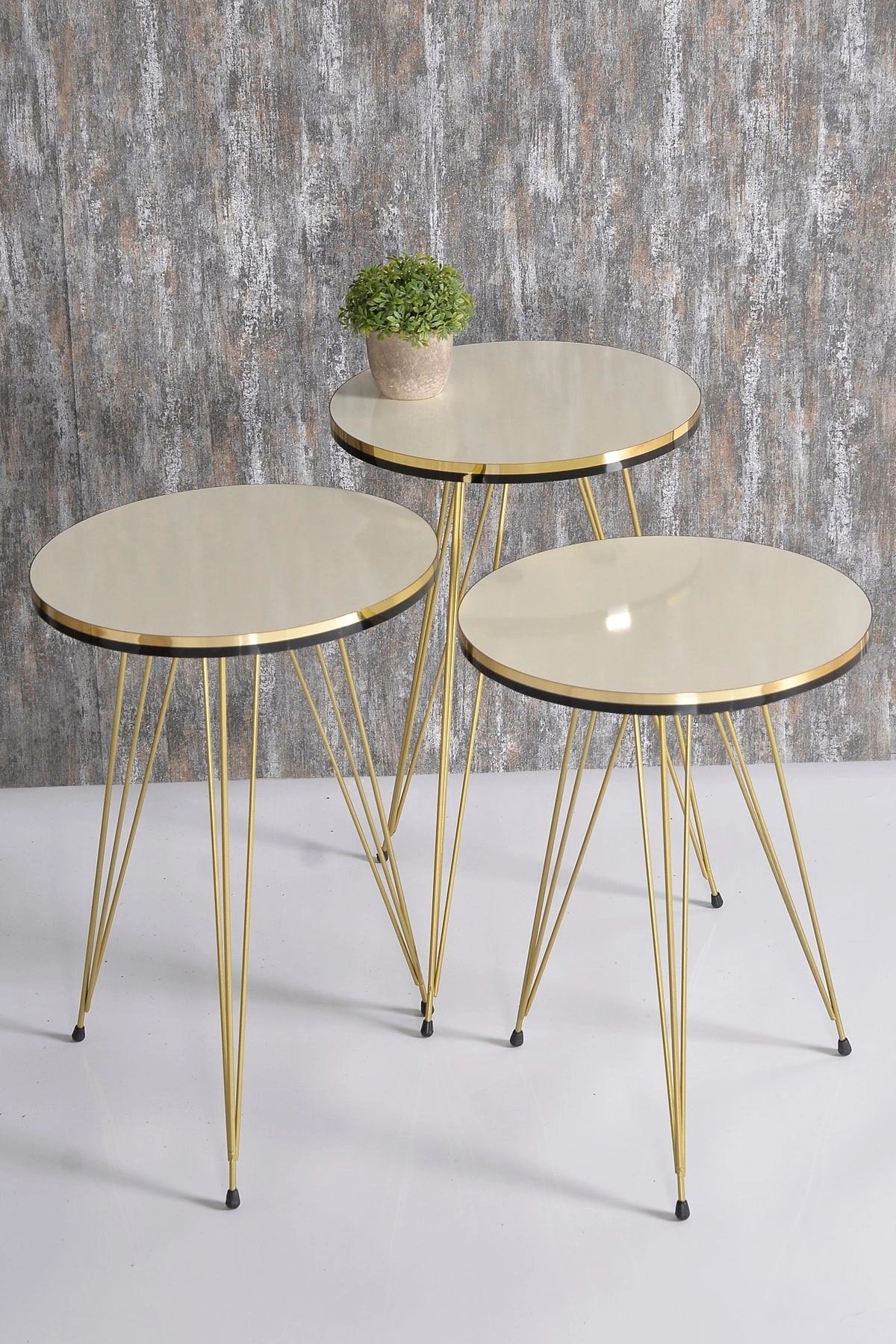 Orta Sehpa Elips Siyah Tel Ayak Çift Altın Efes