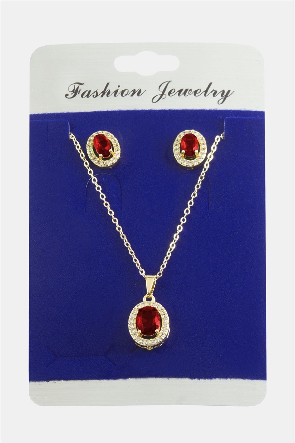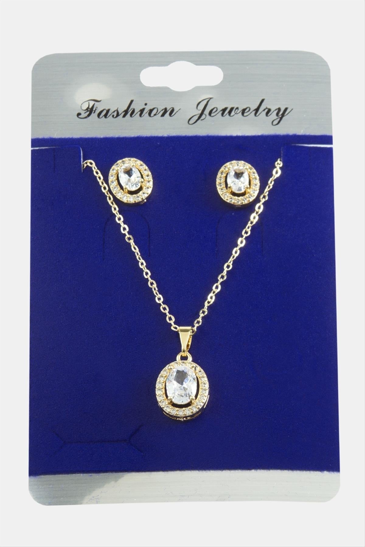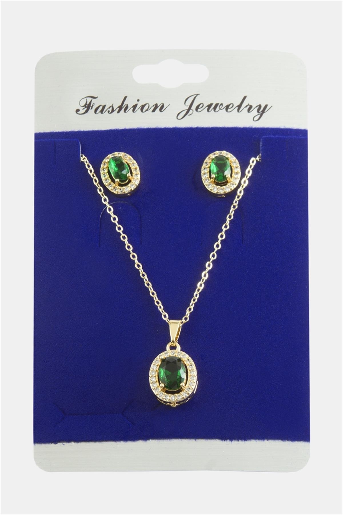 Kolye; Ürün malzemesi metal ve zirkon taştan üretilmiştir. 1 sınıf kaliteli malzeme kullanılmıştır. Ürün 1 adet kolye, ve 1 adet çift küpe vardır. Ürün zincir uzunluğu 45 santimdir. Ürün küpe ucundaki taşlı aparat boyu 1 cm kolye ucundaki aparat boyu 1,5 cmdir.