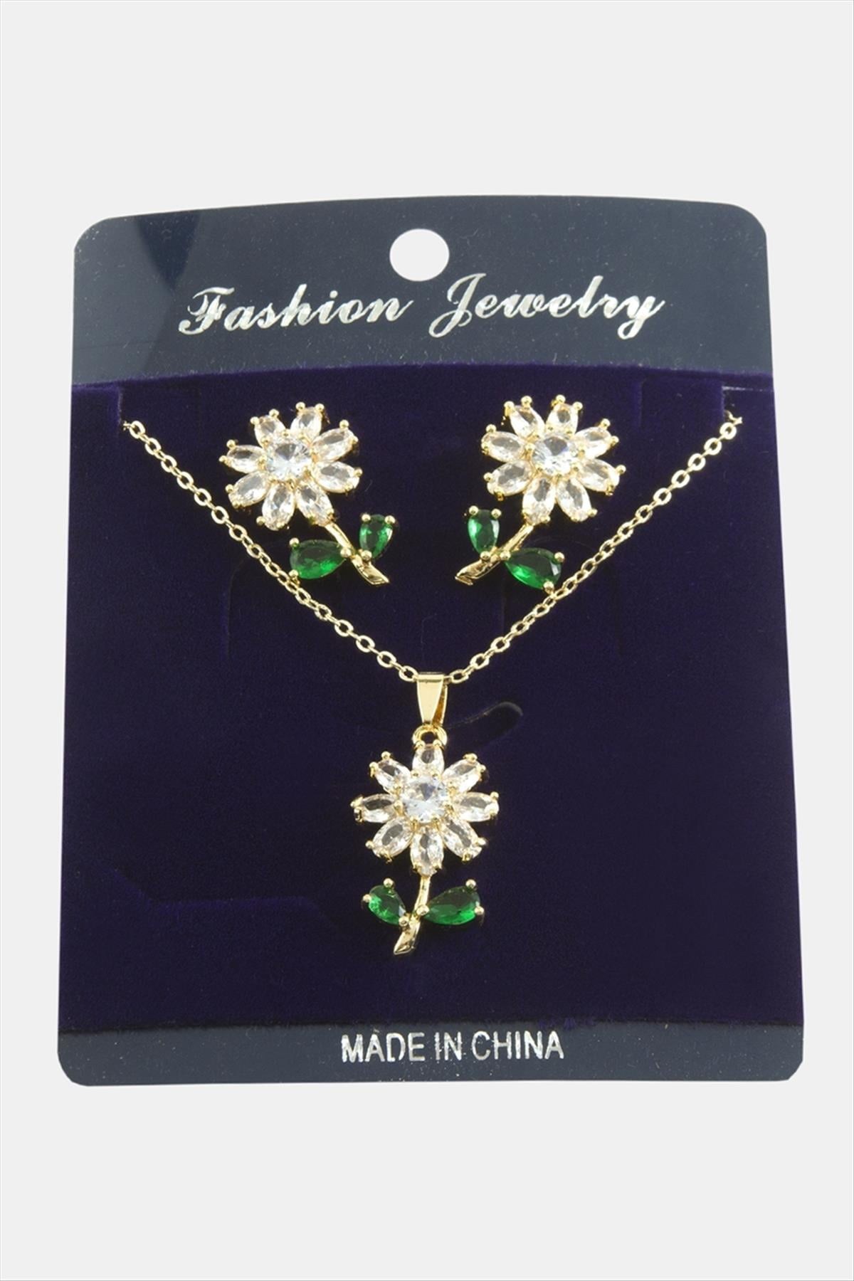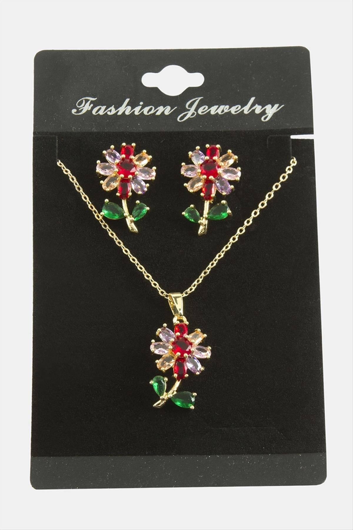 Papatya Zirkon Taşlı Set Kolye