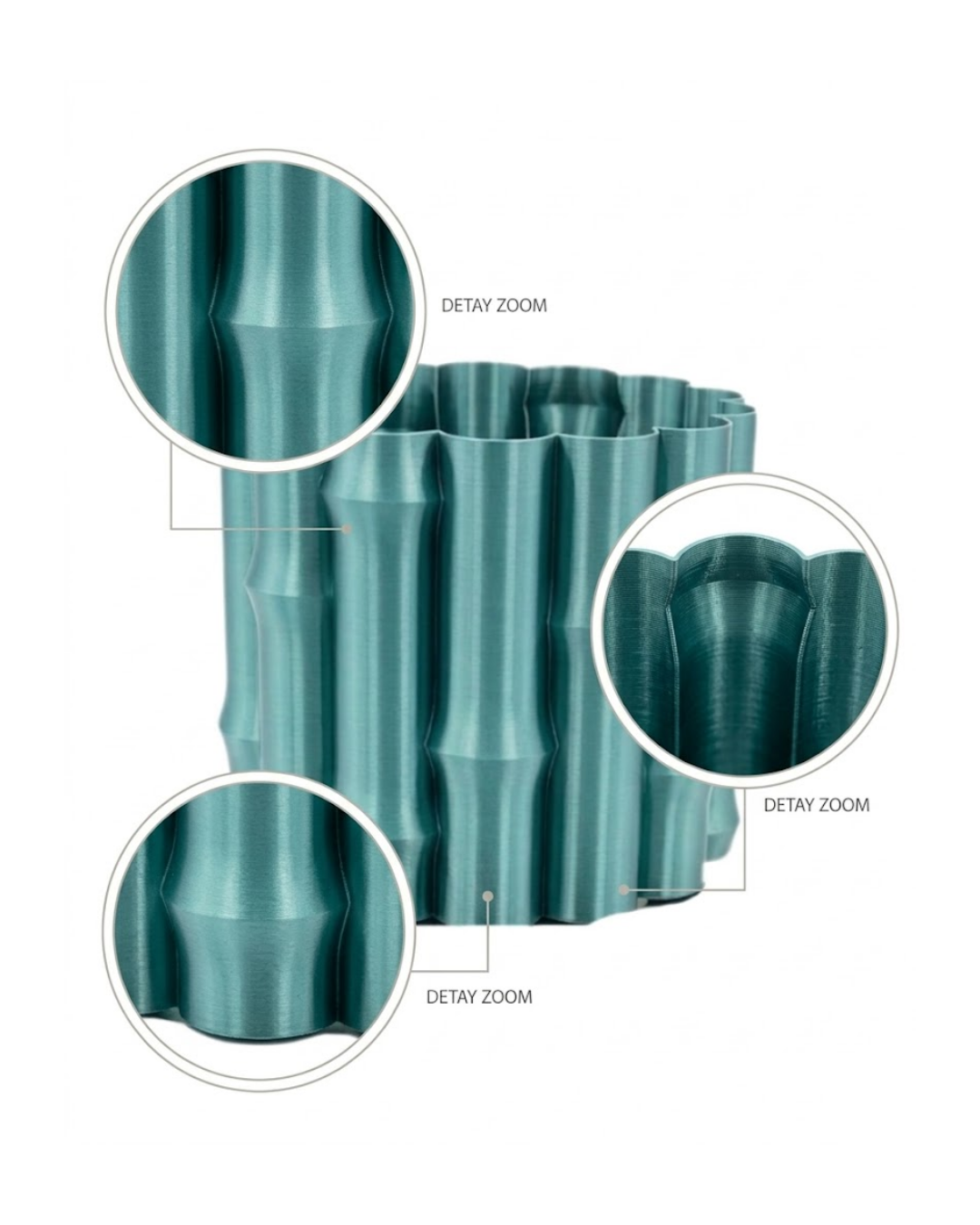 Modern tasarımı ve göz alıcı parlak yeşil rengi ile dikkat çeken bu dekoratif vazo, yaşam alanlarınıza enerjik ve şık bir dokunuş katmak için tasarlanmıştır. Canlı ve parlak yüzeyi sayesinde bulunduğu ortamda hemen fark edilir ve dekorasyonun odak noktası haline gelir. Minimalist tasarım anlayışı ile üretilmiş olması, hem modern hem de sade dekorasyon stilleri ile kolayca uyum sağlamasına olanak tanır. Ürünün yüzeyinde yer alan özel dalgalı form detayları, klasik vazolardan farklı bir görünüm sunar. Bu tasarım sayesinde ışık farklı açılardan yansıyarak ürüne derinlik ve hareket kazandırır. Parlak yeşil ton, özellikle modern ve canlı dekorasyon tarzlarını sevenler için ideal bir tercihtir. Ortama ferahlık ve enerji katar. Salon, yatak odası, ofis, çalışma alanı veya giriş bölümlerinde rahatlıkla kullanılabilir. Masa üstü, sehpa, raf veya TV ünitesi üzerinde konumlandırıldığında bulunduğu alanı zenginleştirir. İçine yapay çiçekler, kuru çiçekler veya dekoratif dallar yerleştirerek farklı dekorasyon konseptleri oluşturabilirsiniz. Aynı zamanda tek başına kullanıldığında da güçlü bir dekoratif etki yaratır. Hafif ve dayanıklı yapısı sayesinde uzun süreli kullanım sunar. Kolay taşınabilir olması sayesinde farklı alanlarda rahatlıkla kullanılabilir. Temizliği oldukça pratiktir ve yüzeyi uzun süre ilk günkü parlaklığını korur. Modern ve dikkat çekici tasarımıyla öne çıkan bu dekoratif vazo, hem kendi yaşam alanlarınız hem de sevdikleriniz için şık bir hediye seçeneği sunar.