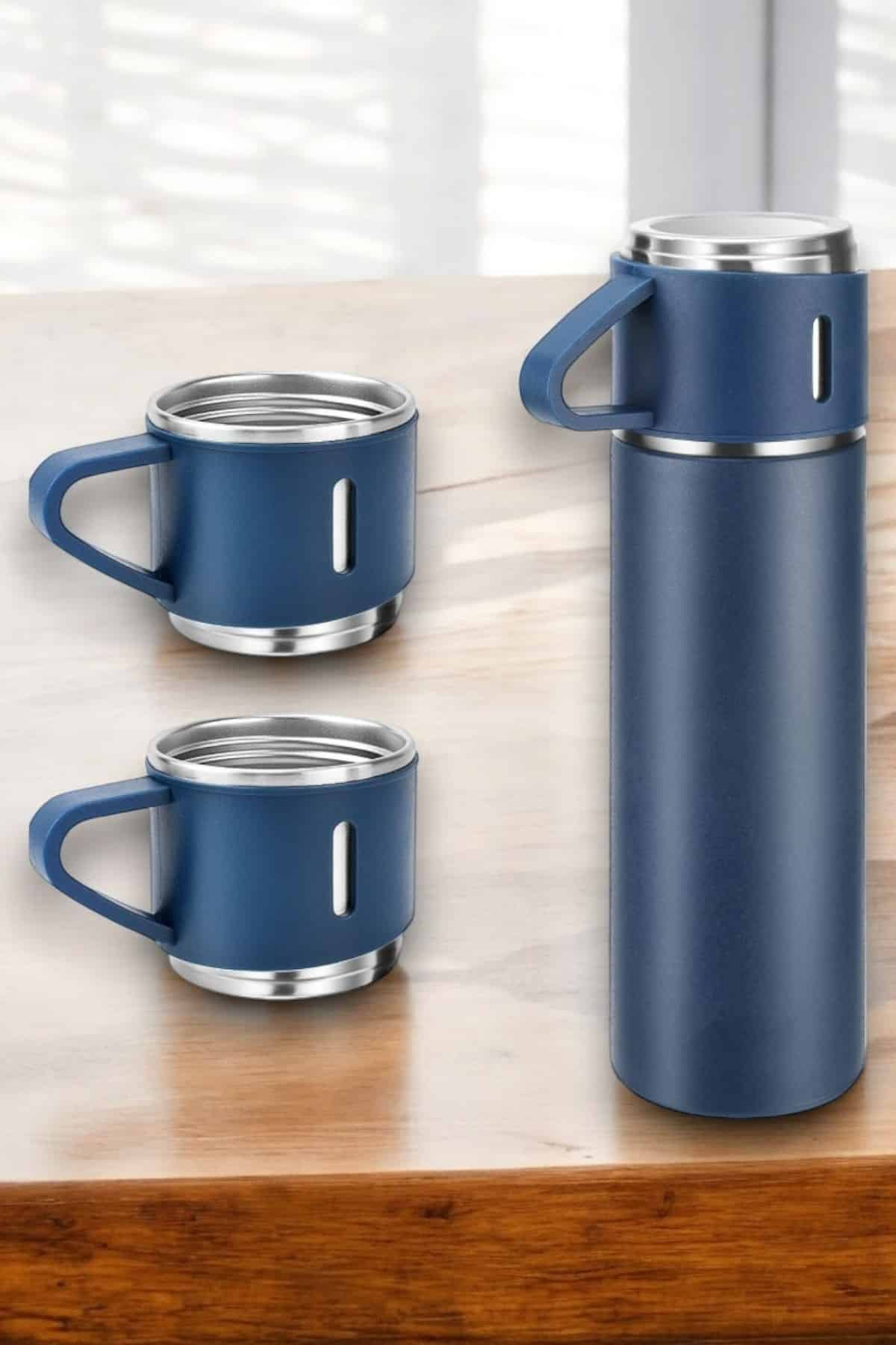 Gün boyunca sıcak ya da soğuk içeceğiniz hep elinizin altında! Paslanmaz çelikten üretilen bu 3’lü termos seti, 8 saate kadar ısıyı muhafaza eden vakumlu tasarımıyla uzun süreli kullanım sunar. 500 ml kapasitesi sayesinde ister çay, ister kahve, isterseniz soğuk içeceklerinizi keyifle taşıyabilirsiniz. Basınçlı kapağı sızdırmazlık sağlarken, elde yıkanabilir yapısıyla pratik bir temizlik imkanı sunar. Evde, ofiste ya da doğada her anınız için mükemmel bir tercih!