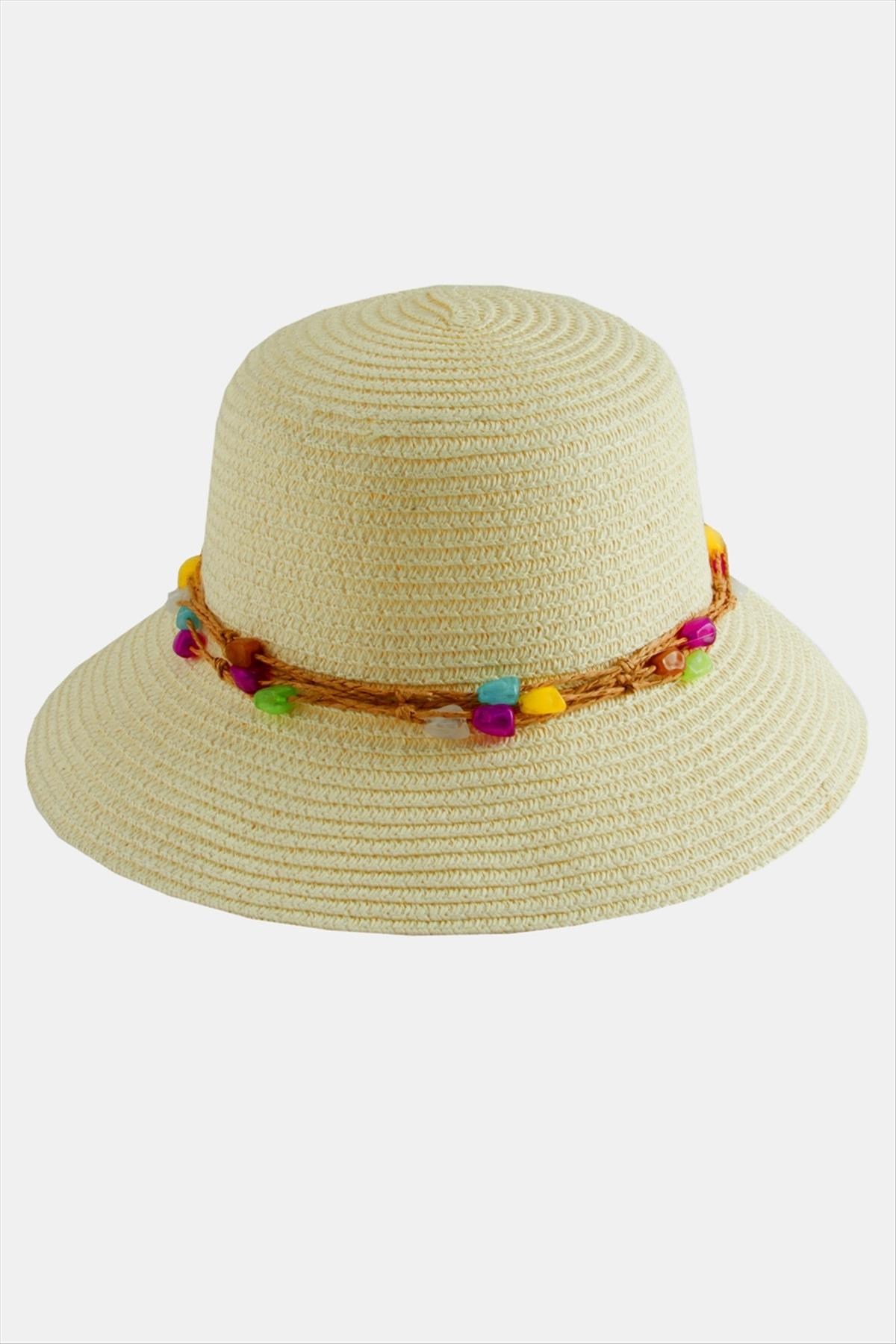 Renkli Doğaltaşlı Hasır Şapka
