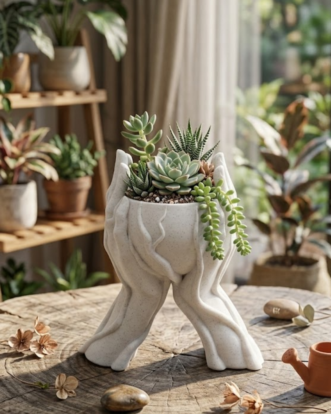 Sanatsal El Figürlü 3D Baskı Dekoratif Saksı Vazo Ev Ofis Dekoru