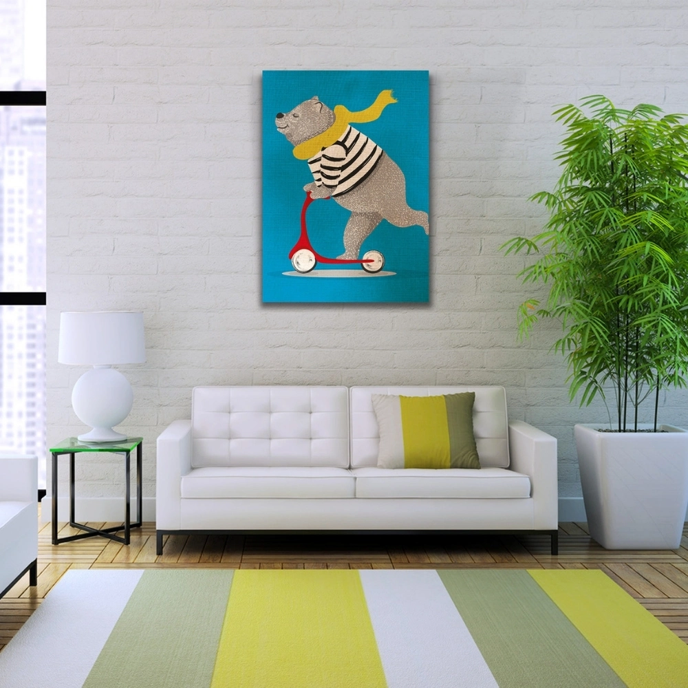 Scooter Süren Sevimli Ayı Kanvas Tablo 50 x 70