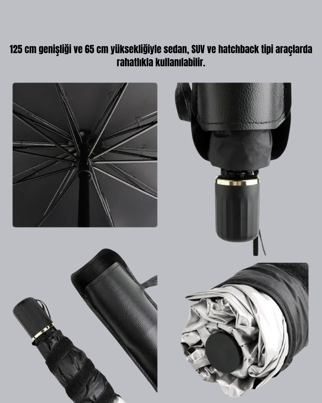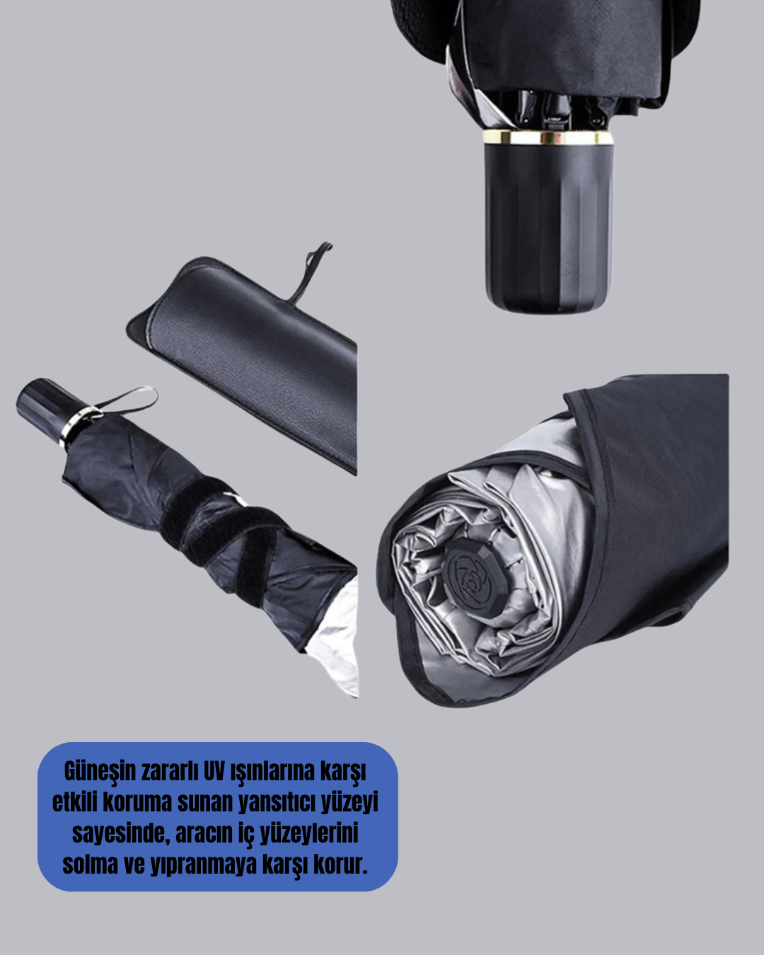 Şemsiye Tasarımlı Katlanabilir Araç Güneşliği – Geniş Uyumlu, UV Koruma