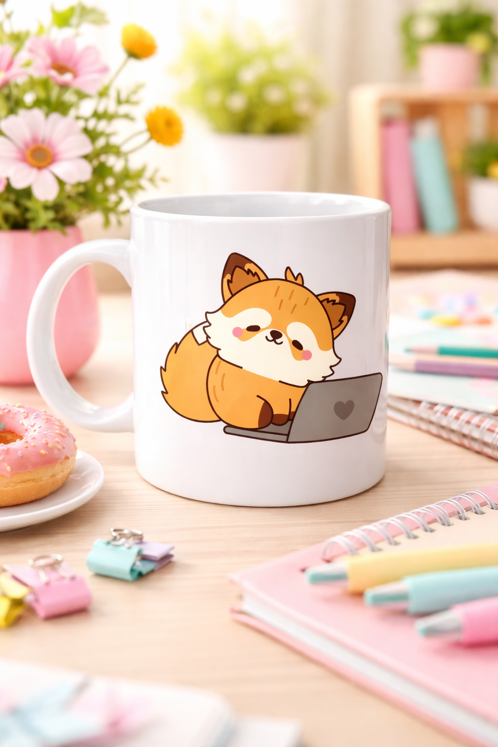 Tilki figürü; çalışkanlığı, zekâyı ve tatlı bir enerjiyi simgeler. Laptop başındaki bu sevimli karakter, “küçük molalar da çok değerli” mesajını verir. Günlük koşuşturma içinde kendinize ayırdığınız o kısa kahve molalarını daha anlamlı kılar ??