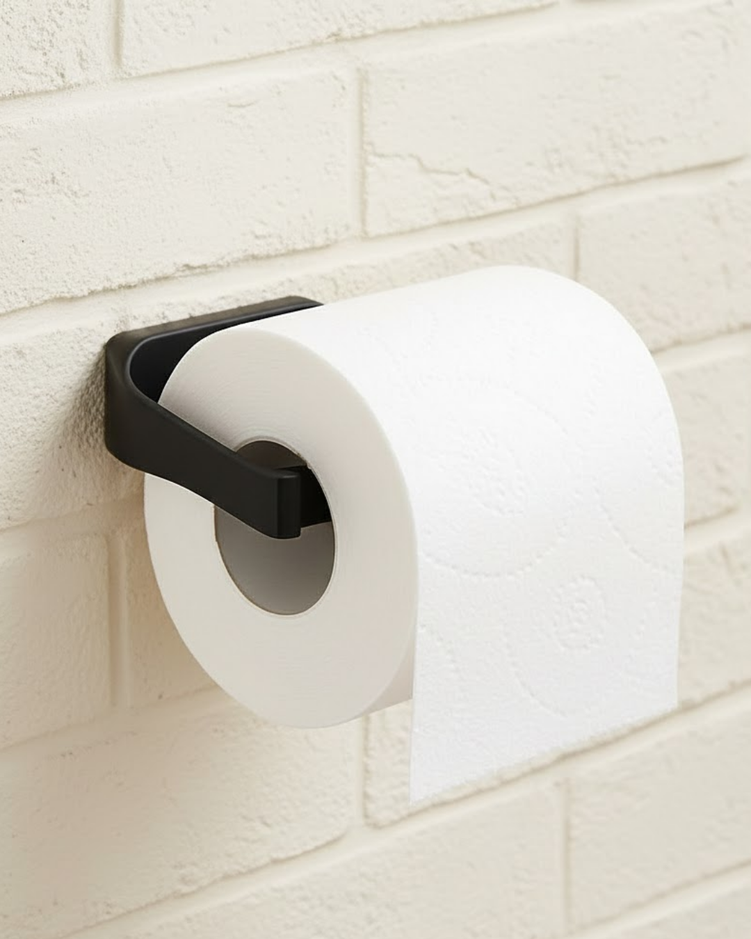 Kullanım kolaylığı sağlayan bu modern peçetelik, banyo düzenini tamamlayan işlevsel bir üründür. Parlak olmayan mat siyah doku, modern tarz sevenlerin favorisi olacaktır. Açık uçlu tasarım sayesinde rulo değişimi hızlı ve pratiktir. Kaliteli malzemeden üretildiği için günlük kullanıma dayanıklıdır. Hem estetik görünümü hem de pratik yapısıyla banyoda şık bir detay oluşturur.