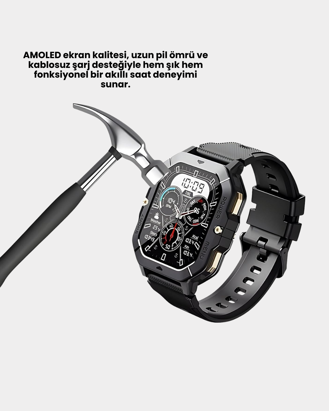 Akıllı özellikleri ve sade tasarımı bir araya getiren bu saat, günlük yaşamda pratiklik sunar. Bildirim takibi, spor modları, müzik kontrolü ve zamanlayıcı gibi fonksiyonlar sayesinde hayatınızı daha düzenli hale getirir. Uzun pil ömrü ve kablosuz şarj desteği, kullanım konforunu artırır. Ultra ince ve hafif yapısı, gün boyu bilekte rahat bir deneyim sağlar. AMOLED ekranı ile hem estetik hem de işlevsel bir kullanım sunar. Teknoloji ve şıklığı bir arada isteyen kullanıcılar için güçlü bir alternatiftir.