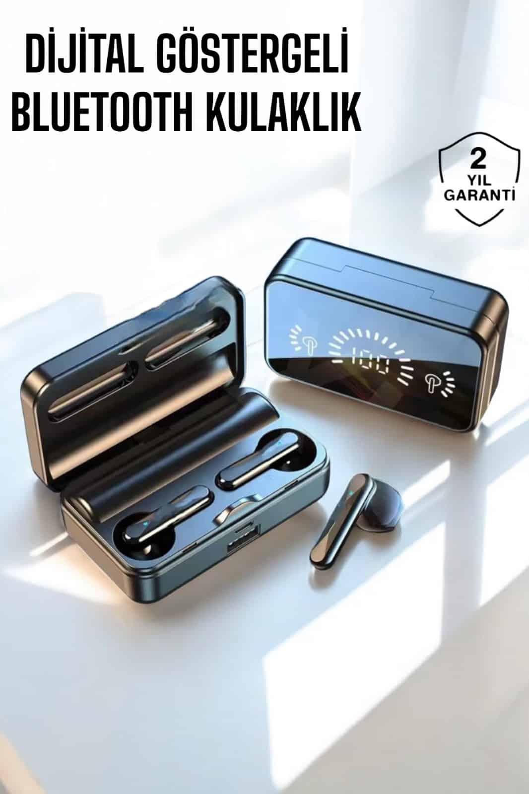Yüksek Performanslı Bluetooth Kulaklık - Kesintisiz Müzik ve Konuşma Deneyimi Bluetooth 5.0 teknolojisiyle donatılmış bu kulaklıklar, müzik dinlerken veya telefon görüşmelerinde size kesintisiz bir deneyim sunar. Çift dijital gösterge sayesinde kulaklıklarınızın pil seviyesini kolayca takip edebilirsiniz. 5-6 gün boyunca şarj edilmeden kullanım sağlayan uzun pil ömrü, sizi sürekli şarj etme zahmetinden kurtarır. Ayrıca, şarj kutusu 2000mAh kapasitesiyle kulaklıklarınızı birden fazla kez hızlıca şarj eder. Gelişmiş Ses ve Gürültü Önleme Teknolojisi ile Net İletişim Kulaklıklar, güçlü bass özelliğiyle zengin bir ses deneyimi sunarken, aktif gürültü önleyici teknoloji sayesinde dış dünyadan gelen gürültüyü etkili bir şekilde engeller. Bu özellik, telefon görüşmelerinizde karşı tarafa daha net bir ses iletmenizi sağlar, özellikle gürültülü ortamlarda ses kalitesinden ödün vermez. Sesli komut özellikleriyle müzik çalma/durma ve çağrı cevaplama gibi işlemleri kolayca kontrol edebilirsiniz. Suya Dayanıklı ve Ergonomik Tasarım ile Konforlu Kullanım IPX5 suya dayanıklılık özelliği ile terlemeye ve yağmura karşı korumalıdır, bu sayede spor yaparken veya dış mekanlarda kullanım için idealdir. Hafif ve ergonomik yapısı, uzun süreli kullanımlarda bile rahatlık sunar. Şık siyah tasarımı, her ortamda şıklığınızı yansıtır. Bu kulaklıklar, müzik dinlerken veya konuşurken konforlu bir deneyim sağlamak için mükemmel bir seçimdir.