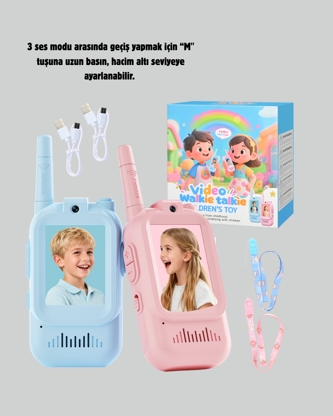Görüntülü walkie talkie, çocukların iletişim becerilerini geliştirirken eğlenceli vakit geçirmesini sağlar. Video görüşme, uzun menzil ve ses efektleri ile oyunları daha keyifli hale getirir. Doğum günü, yılbaşı ve özel günler için ideal bir hediye seçeneğidir. 3–12 yaş arası çocuklar için güvenli ve eğlenceli bir oyuncaktır.