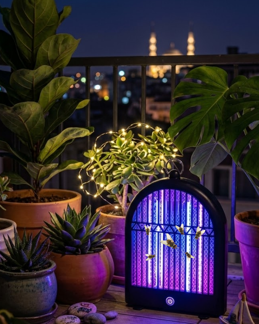 UV sivrisinek öldürücü lamba, yaz aylarında yaşanan sivrisinek ve uçan haşere problemlerine karşı etkili ve modern bir çözüm sunar. Özel UV ışık teknolojisi sayesinde sivrisinekleri ve diğer uçan böcekleri kendine çeker ve güçlü elektrikli ızgara sistemi ile hızlı bir şekilde etkisiz hale getirir. Kimyasal içermeyen yapısı sayesinde sağlığınızı riske atmadan doğal bir koruma sağlar. Sprey, tablet veya kimyasal ürün kullanmak istemeyen kullanıcılar için ideal bir alternatiftir. Cihaz, sessiz çalışma teknolojisi ile öne çıkar. Gece boyunca çalışırken rahatsız edici bir ses çıkarmaz, bu sayede özellikle yatak odasında kullanım için son derece uygundur. Gürültüsüz yapısı sayesinde kesintisiz ve kaliteli bir uyku deneyimi sunar. Aynı zamanda koku yaymayan sistemi ile ortam havasını bozmaz ve ferah bir kullanım sağlar. Güvenlik açısından da oldukça avantajlıdır. Dış koruma ızgarası sayesinde elektrikli bölüme temas engellenir. Bu özellik, çocuklu ve evcil hayvanlı evlerde güvenle kullanım imkanı sunar. USB-C şarj özelliği sayesinde cihazı kolayca şarj edebilir, powerbank, laptop veya adaptör ile pratik bir şekilde kullanabilirsiniz. Duvara asılabilir veya masa üzerinde kullanılabilir tasarımı sayesinde oldukça esnektir. Balkon, bahçe, teras, salon veya ofis gibi farklı alanlarda rahatlıkla kullanılabilir. 360 derece koruma sağlayan yapısı sayesinde bulunduğu ortamın tamamını etkili bir şekilde korur. Hem iç hem dış mekan kullanımına uygun olan bu ürün, yaz akşamlarınızı daha konforlu hale getirir.