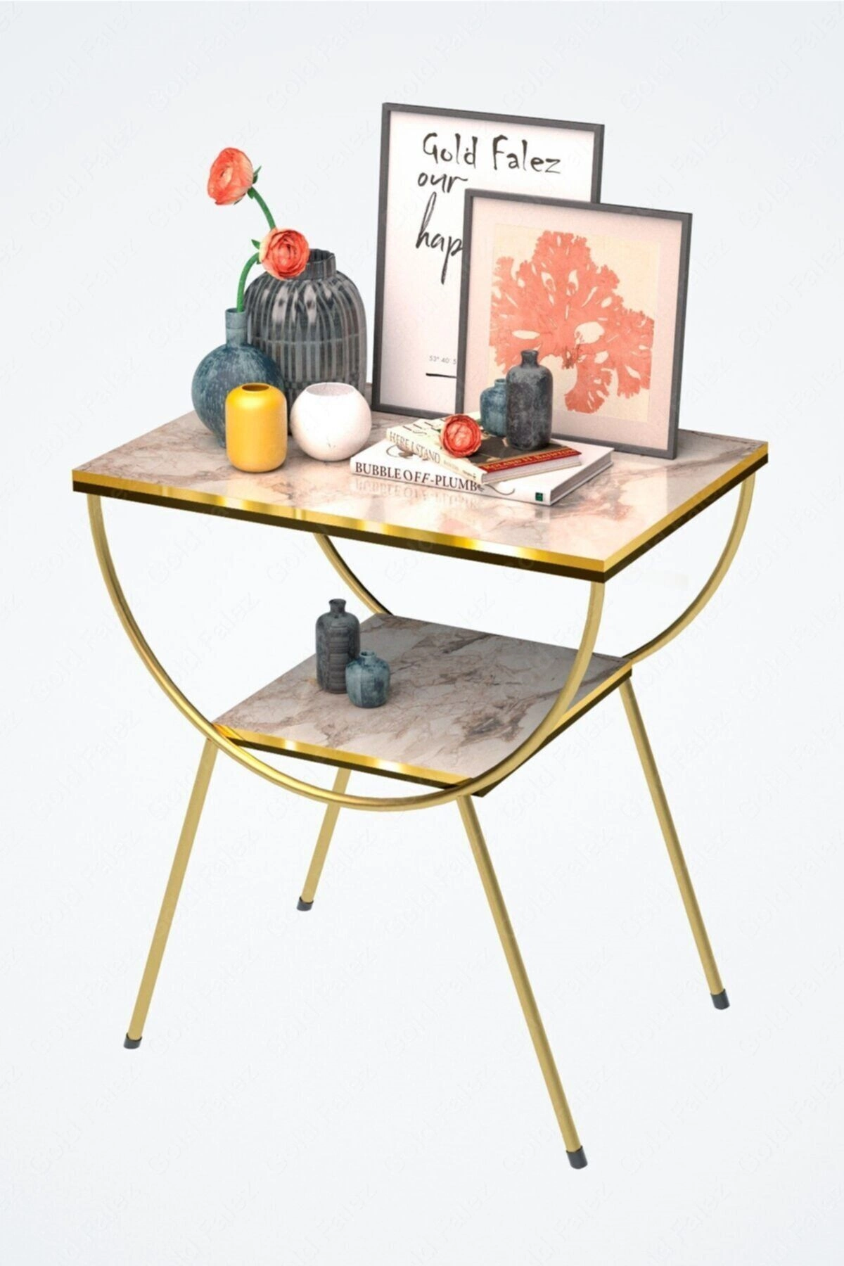Yan Sehpa Komodin Metal Ayak Çift Gold Efes