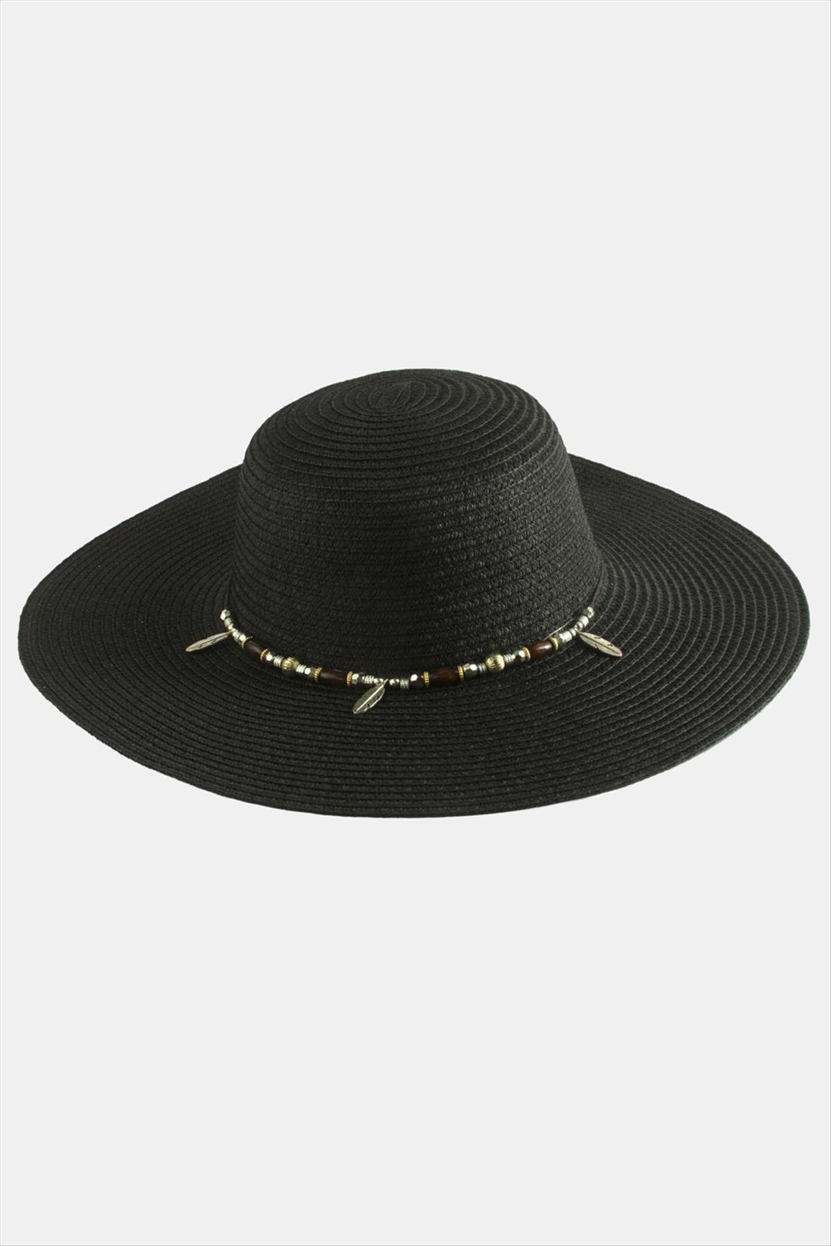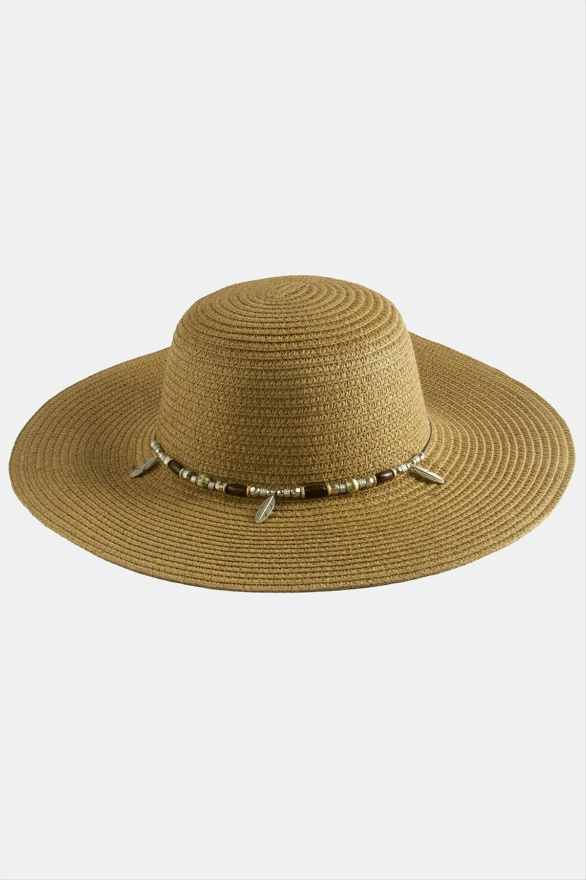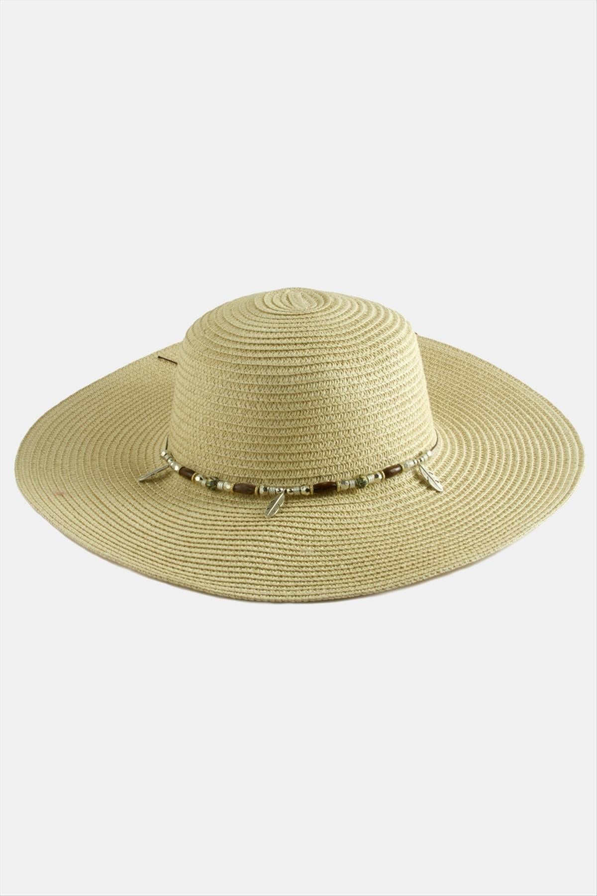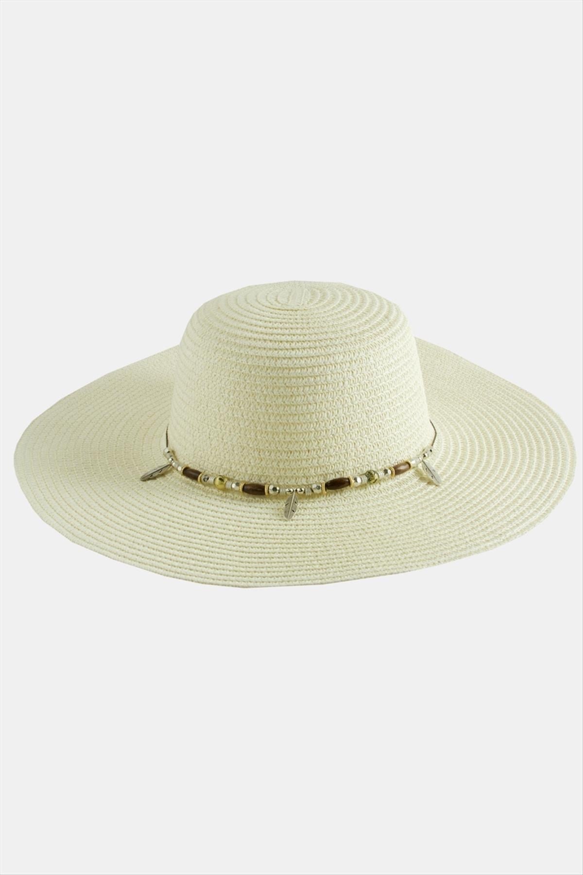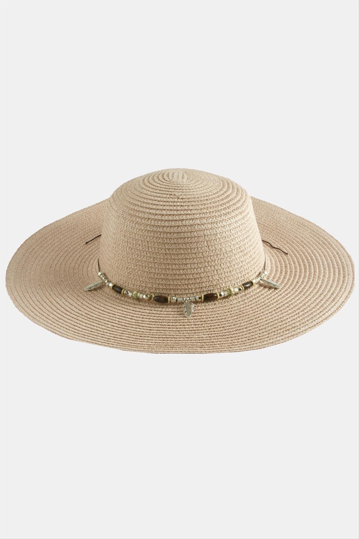Yaprak Boncuklu Hasır Şapka