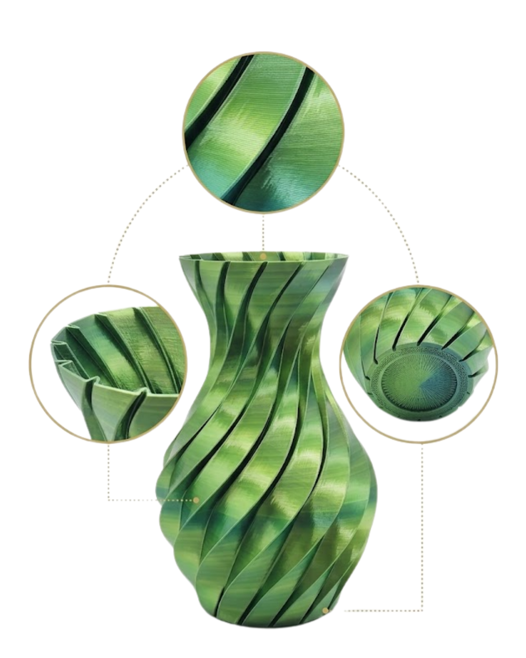 Yeşil Spiral 3D Baskı Vazo Estetik Modern Ev Ofis Dekoru