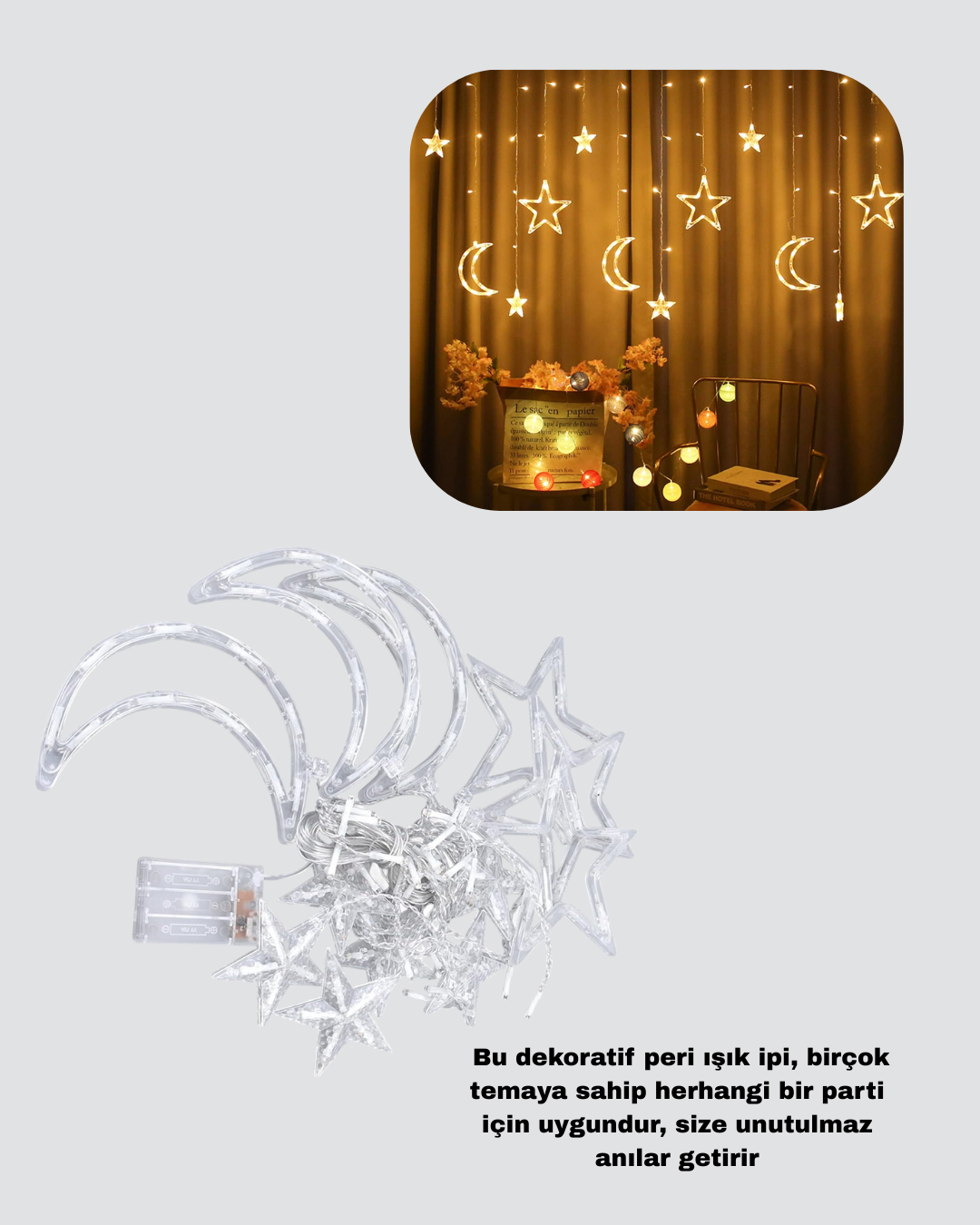 Yıldız ve Ay Figürlü Prizli Perde LED Işık Romantik Ortam Aydınlatması