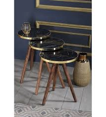 Zigon Sehpa 3'lü Ahşap Torna Ayak Gold Bendir